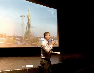 Le rendez-vous était aux petites heures du matin afin d’assister au lancement du vaisseau Soyouz, sur le grand écran de la salle Sylvain-Lelièvre, au Collège Maisonneuve. Un peu plus d’une centaine de personnes se sont déplacées pour l’événement, des étudiants, des voisins et plusieurs familles.