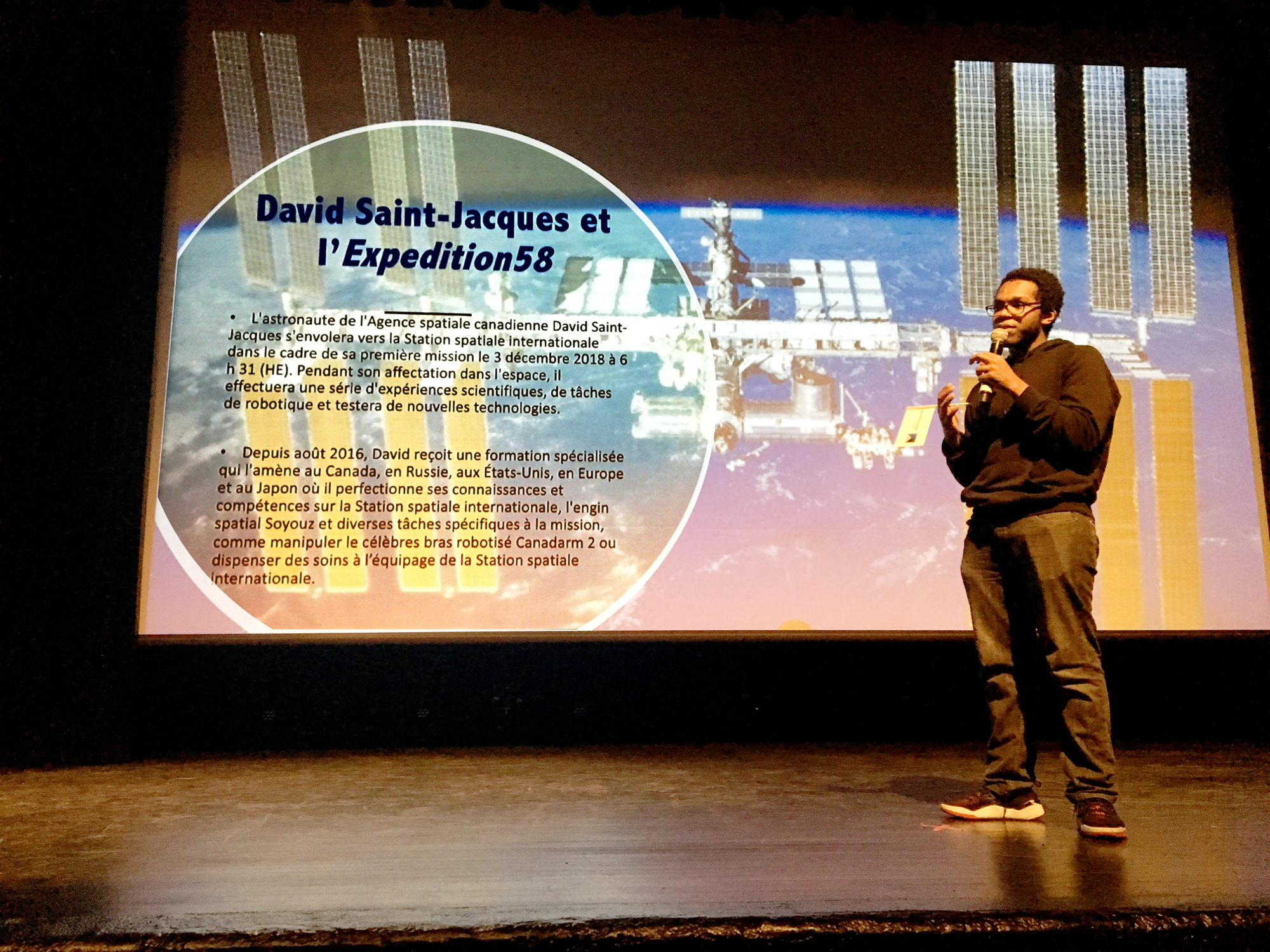 Évoluant dans le programme enrichi en Sciences nature, Terren’s Choute est impressionné par l’astronaute. Mentionnant les longues études dans différents domaines de David Saint-Jacques, l’apprenti scientifique a soulevé qu’elles lui auront permis de réaliser son rêve. «J’aimerais le remercier pour ce message d’espoir et pour être un modèle pour les élèves de Maisonneuve», a-t-il dit.
