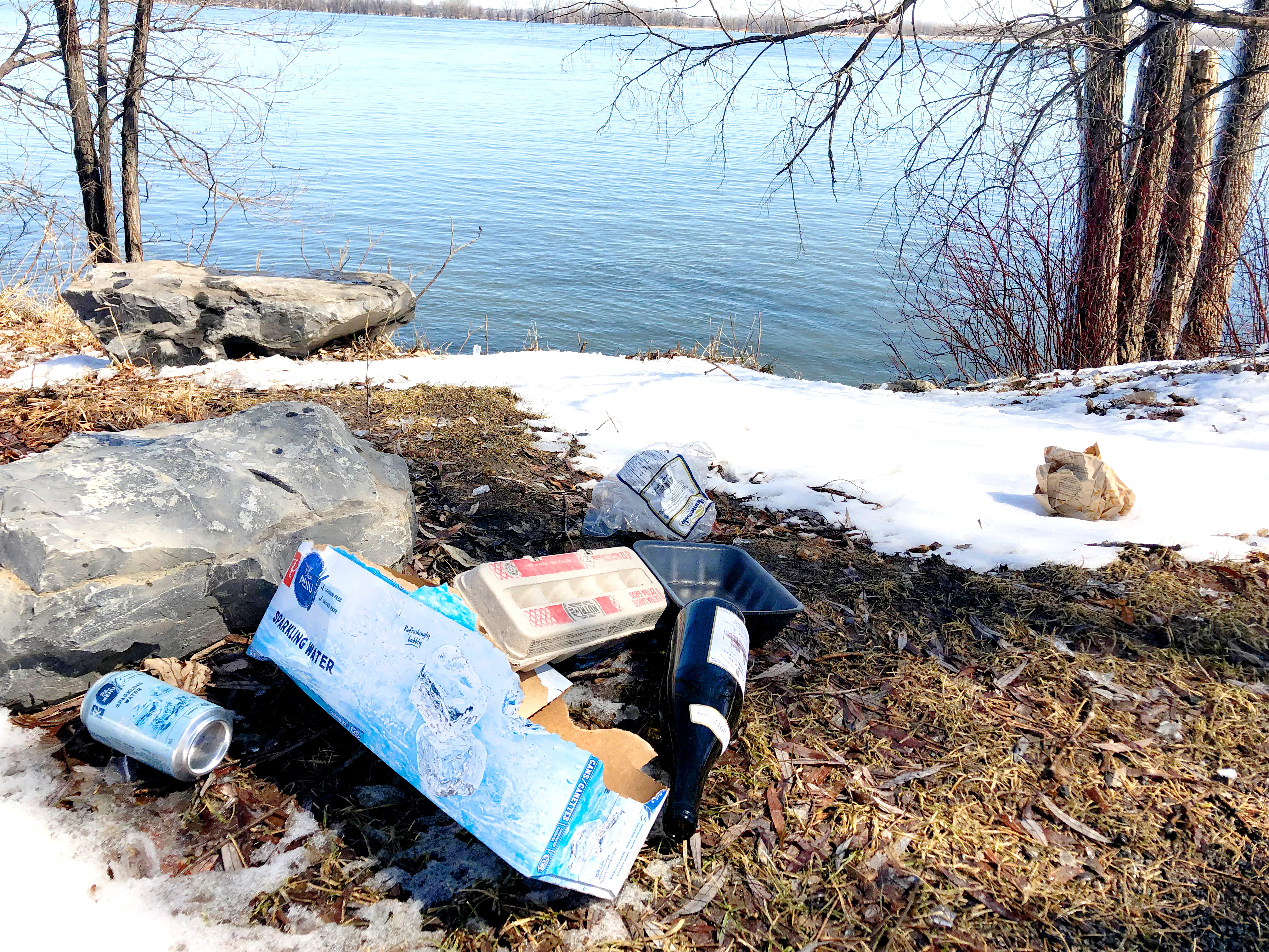 La fonte des neiges laisse place à la verdure mais aussi aux multiples déchets accumulés sous les couches de glace. Mais grâce aux corvées de nettoyage organisées par les résidents de l’est de Montréal, les magnifiques vues sur le fleuve seront bientôt retrouvées, exemptes de détritus.