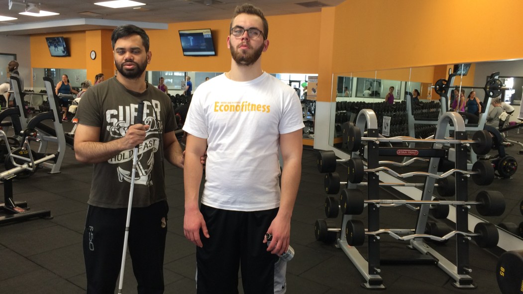 Environ cinq fois par semaine, Samy Mian et Dominic Brouillet, deux jeunes de Tétreaultville, se rendent à un gym de l’est de Montréal. Comme tous les autres clients, ils peuvent passer des heures à travailler leurs différents groupes musculaires. Pourtant, leur routine d’entraînement a quelque chose d’unique puisqu’ils sont respectivement aveugle et semi-voyant.