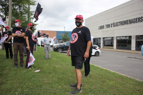 Six ans après la faillite de leur ancien employeur, les «Bafoués de MABE» n’abandonnent pas. Masqués, pandémie oblige, les anciens travailleurs ont manifesté à l’angle des rues Notre-Dame Est et Dickson. Ils étaient accompagnés de l’équipe de direction de leur ancien syndicat Unifor-Québec, dont le directeur Renaud Gagné.