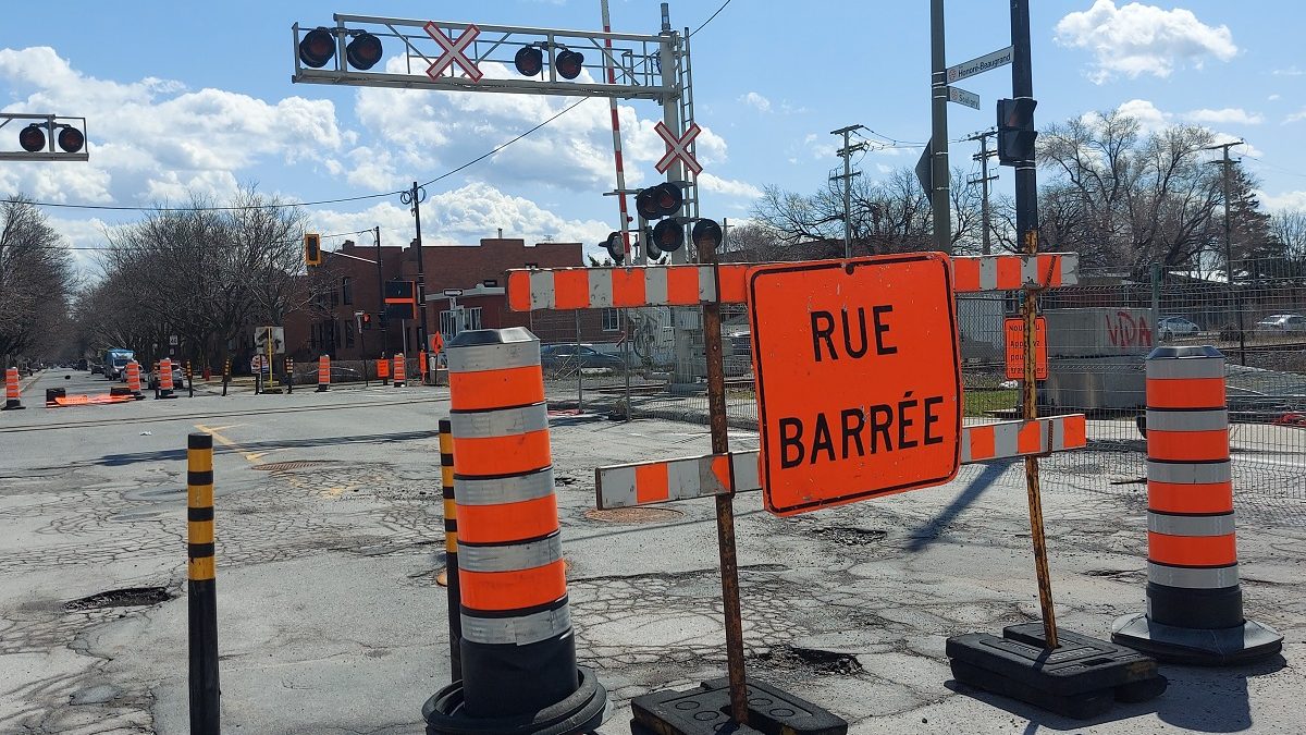 Afin justement de permettre l’installation de feux de circulation à l’intersection de l’avenue Souligny et de la rue Honoré-Beaugrand, cette dernière est actuellement bloquée à la hauteur de la voie ferroviaire.