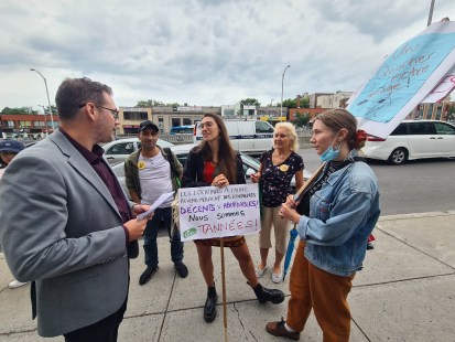 «La mairesse n’est pas notre ennemie; je vous demande de ne pas être violent ou impoli. On est là pour discuter et tenter de trouver une solution avec elle», a fait savoir au groupe Darby MacDonald, avant de pénétrer dans la mairie. Après plus d’une demi-heure d’attente dans le hall du bâtiment, Etienne Brunet, chef de division, communication et relation avec les citoyens, est descendu à la rencontre des militants, pour récupérer les lettres. «C’est sûr que la mairie va prendre le temps de regarder les courriers. Après, c’est à eux de décider ce qu’ils peuvent en faire, et il faut voir si l’enjeu se retrouve au municipal ou au palier du provincial», a commenté sans se mouiller le fonctionnaire.