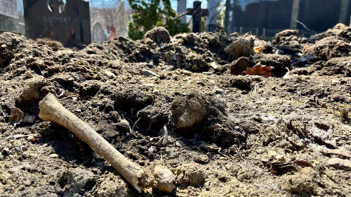 Des ossements déterrés jonchent plusieurs tombes du cimetière Notre-Dame-des-Neiges, a pu constater Métro vendredi. Fermé aux visiteurs depuis la tempête de verglas et aux prises avec un important conflit de travail, le site est dévasté.