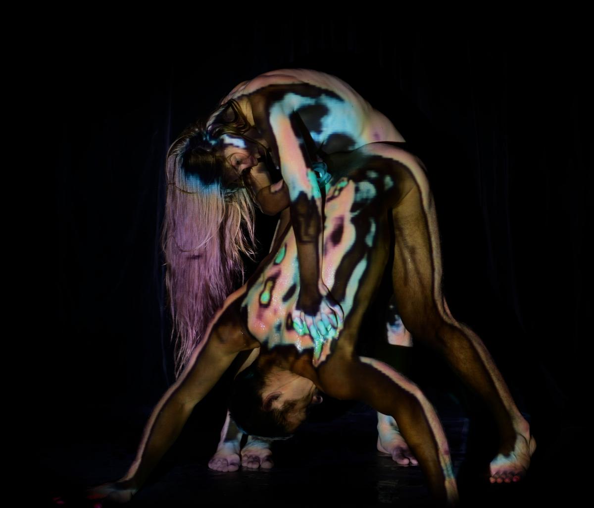 Le mouvement des danseurs se perd dans les images projetées de leurs propres ébats et des fantasmes qui les habitent. Et l’on succombe avec eux aux vertiges de l’amour.