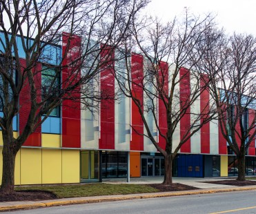 «La couleur fait partie de l’ADN de notre bureau [Atelier Big City], m’explique un des architectes qui ont chapeauté le projet, Randy Cohen. Ici, dans le centre, la couleur devient un code pour définir les espaces. Le bleu nuit, c’est la salle de spectacle. Le vert, c’est la bibliothèque. C’est une forme de signalétique.»