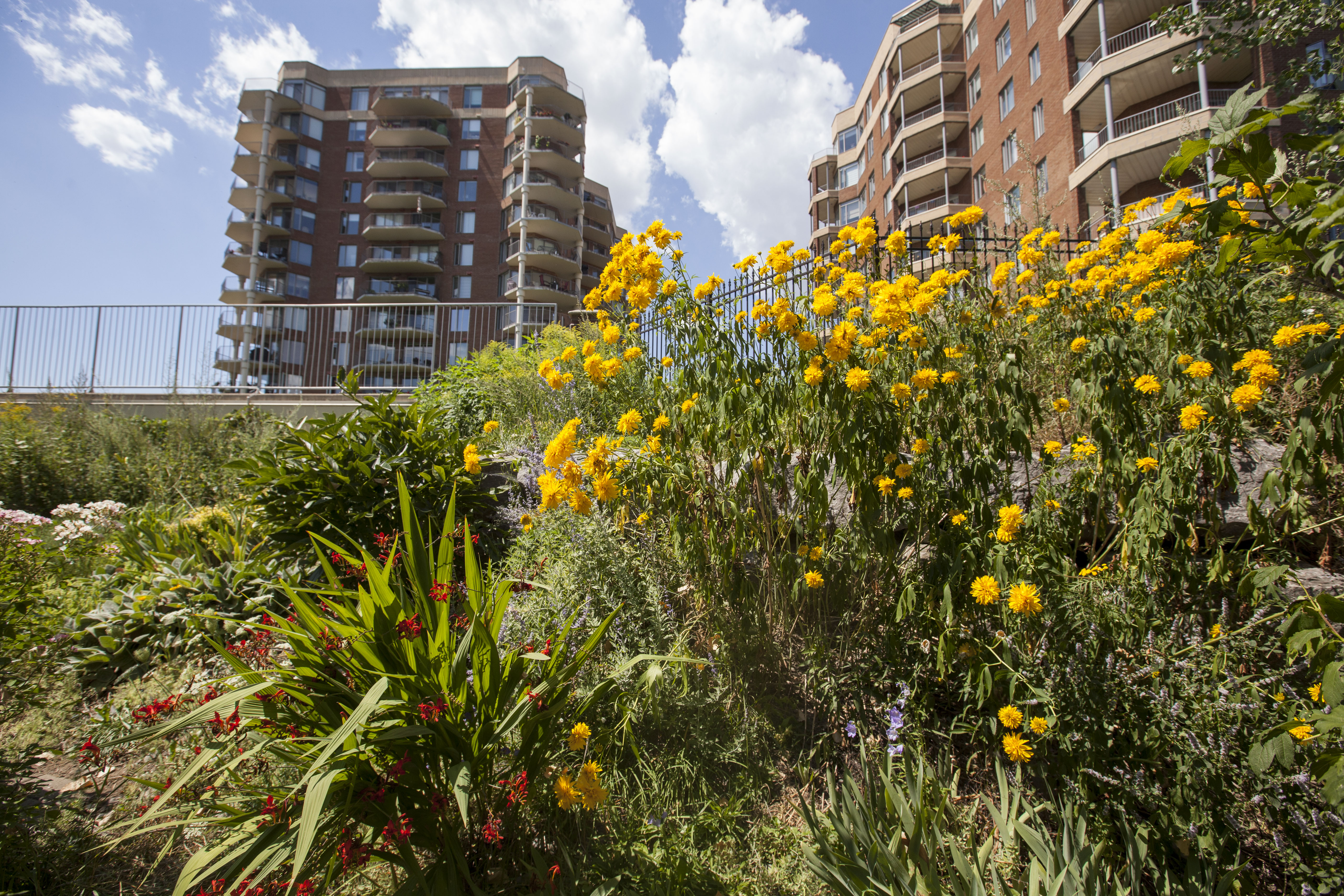 Entre la piste cyclable et les tours à condos de l’allée des Brises-du-Fleuve, tout près de l’Auditorium de Verdun, se trouve un petit coin de prairie où pousse une centaine d’espèces de plantes et de fleurs sur environ 50 mètres carrés. C’est une dame de 90 ans, Thérèse Romer, qui a adopté en 2008 cet espace appartenant à l’arrondissement et en prend soin depuis.