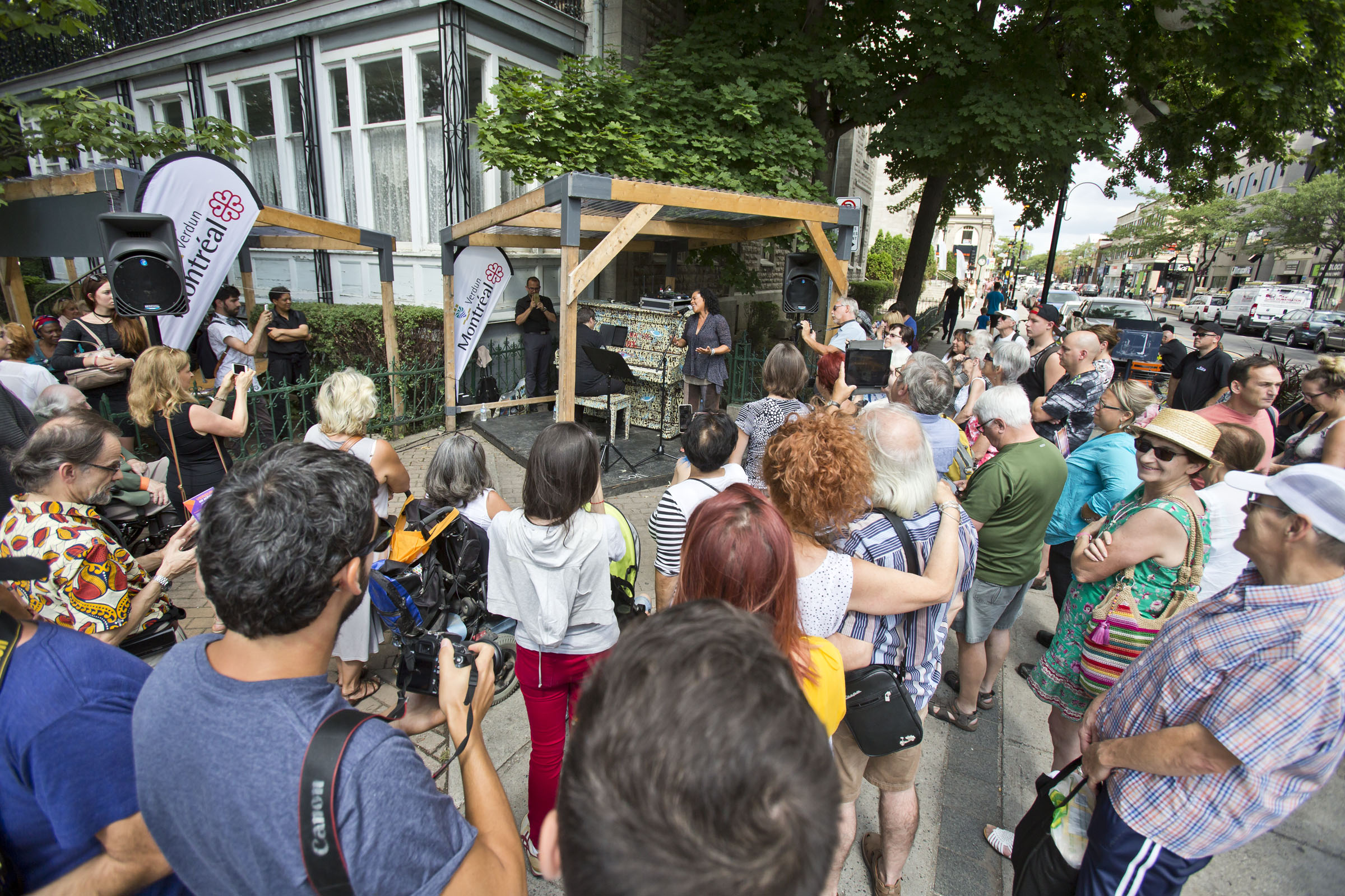 L’émotion était palpable dès les premières paroles de Quand les hommes vivront d’amour, interprétée par Dawn Tyler Watson à Verdun, pour souligner le 60e anniversaire de la chanson. Par égard à l’auteur-compositeur-interprète de la pièce, Raymond Lévesque, installé au premier rang devant le piano, un silence solennel et respectueux a été observé sur la rue Wellington.