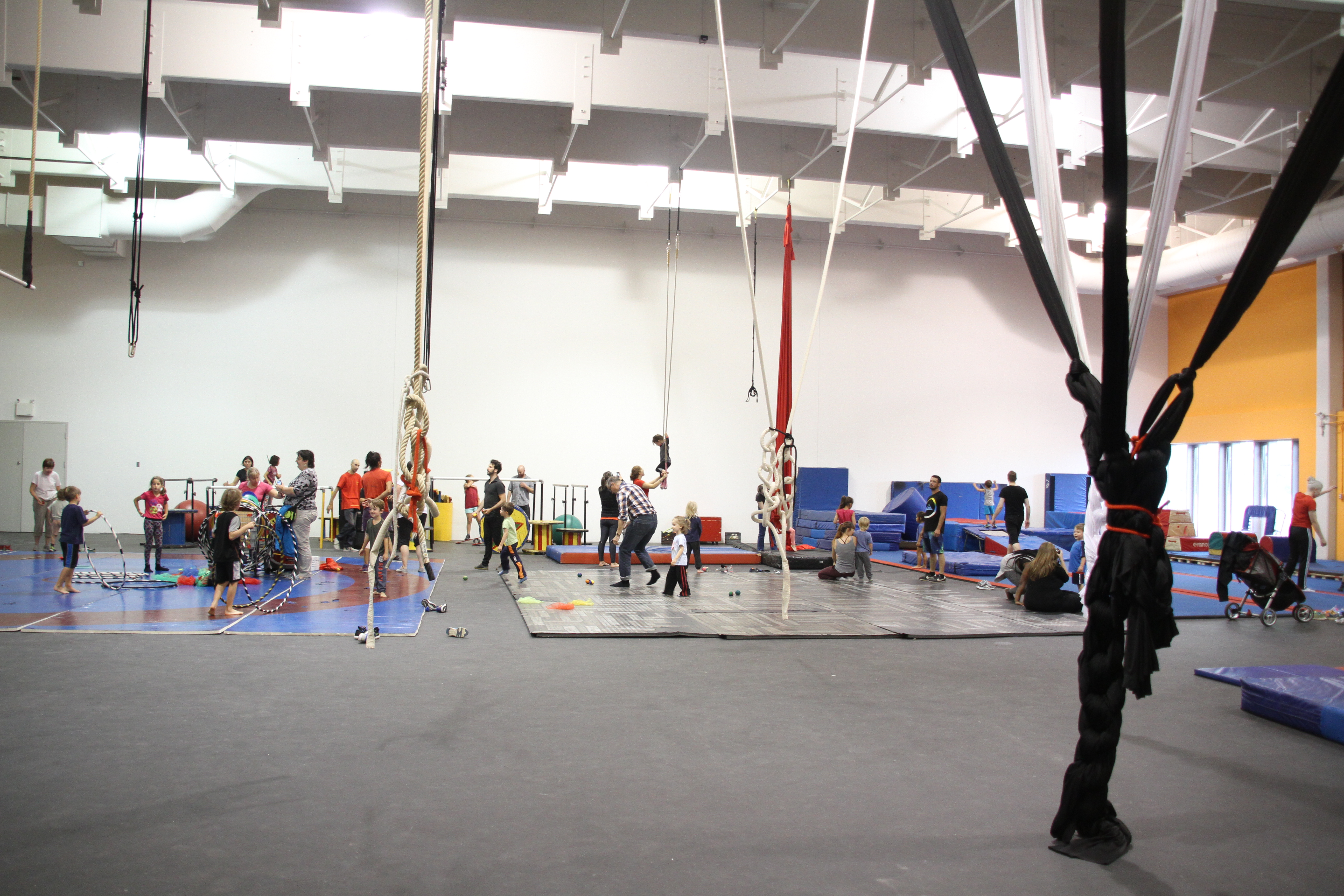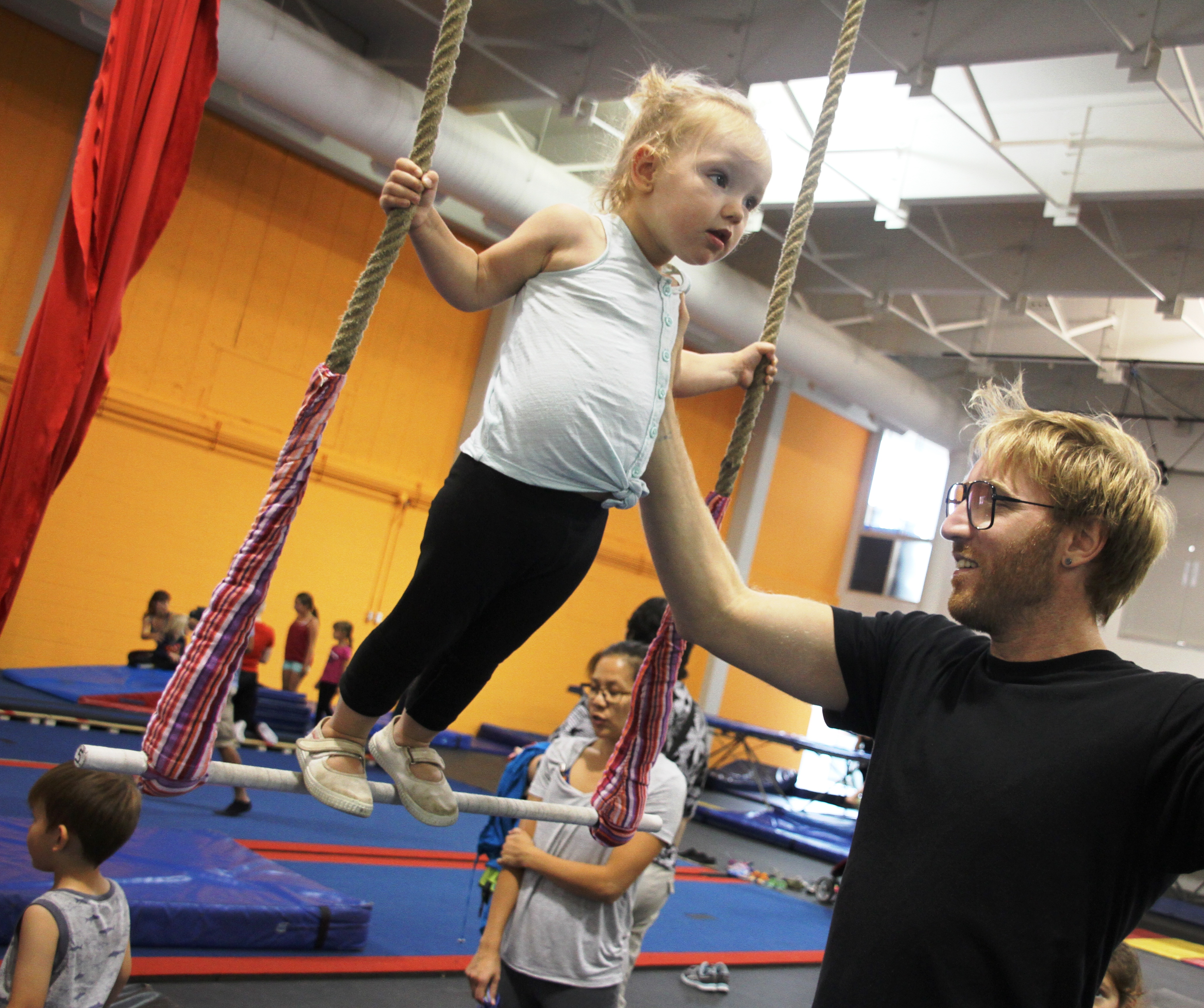 Sans avoir à s’inscrire aux cours réguliers, les amateurs de cirque peuvent essayer les installations de l’école lors d’ateliers mensuels. Petits et grands sont invités à jongler, marcher sur la poutre, sauter sur les trampolines et jouer les trapézistes.