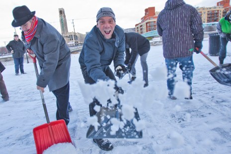 La piste cyclable du canal Lachine a été déneigée à la main vendredi matin par une trentaine de cyclistes réunis près du marché Atwater. Ce grand «pellete-in» avait pour objectif de réclamer l’entretien à l’année de cette voie cyclable, la plus importante à relier le Grand Sud-Ouest au centre-ville.