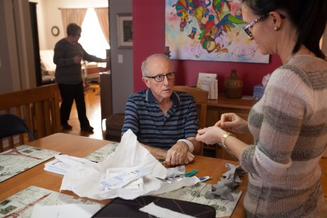 N’ayant jamais aimé les hôpitaux, les soins à domicile permettent à l’homme de 83 ans de demeurer dans le logement des 32 dernières années qu’il a partagé avec son épouse, dont la présence est encore palpable à travers de petites touches, comme les fleurs de tissu sur la table du salon.