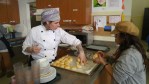 Devant les fourneaux, son équipe est tout sourire. Dre Anette Schmidt ajuste l’assaisonnement de la salade de haricots pendant que Marwa Ismail, originaire du Caire, met les pains maison au four. Toutes deux apprennent beaucoup auprès de Mme Pion et sont visiblement heureuses de constater le succès de leur soupe à l’oignon.