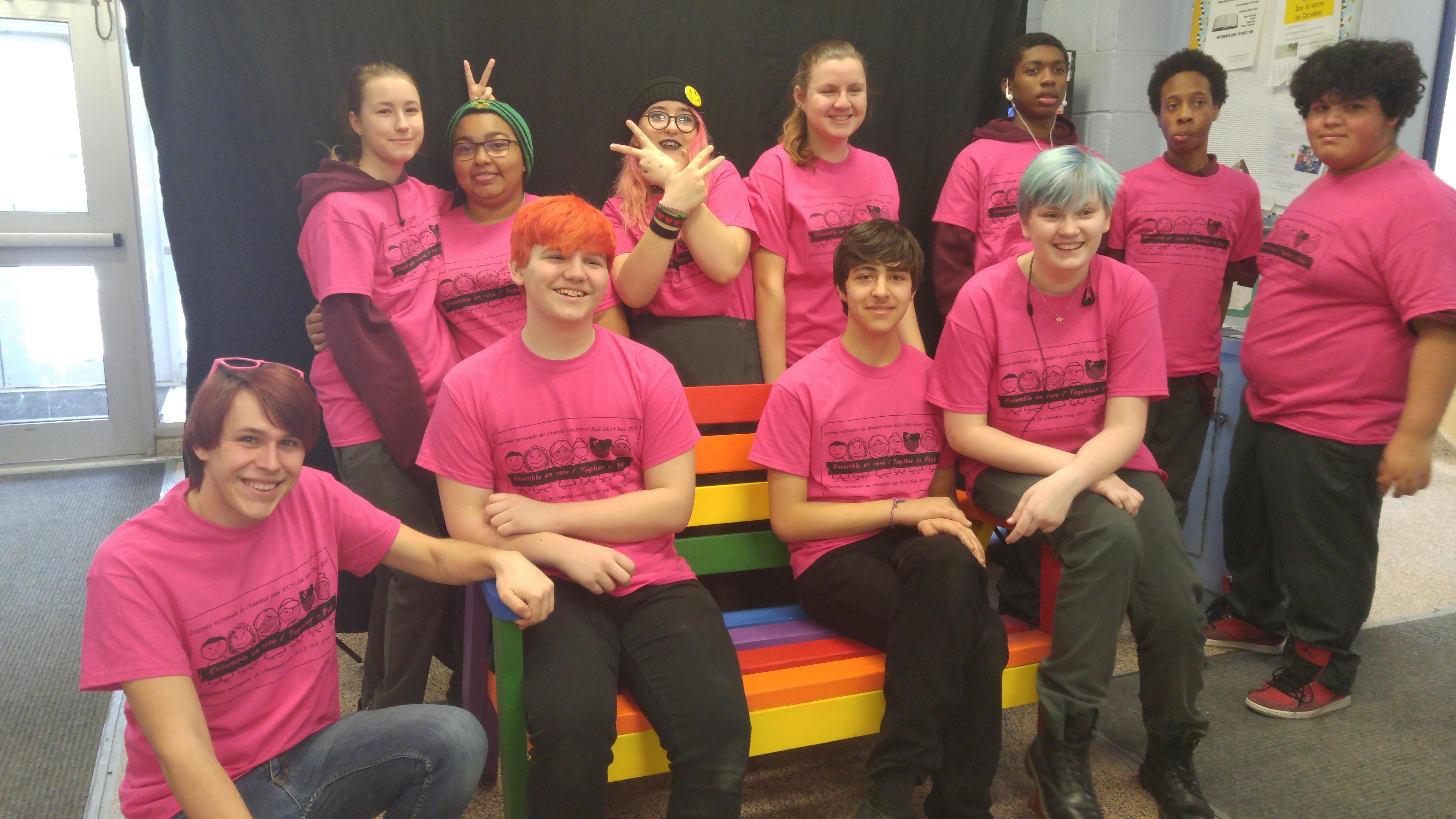 Des bancs peints aux couleurs de l’arc-en-ciel, des «buddy benches», seront installés comme espace refuge pour ceux qui auraient besoin de parler ou d’être soutenu. Certains élèves du groupe iront même faire la lecture de contes LGBTQ dans des classes du primaire.