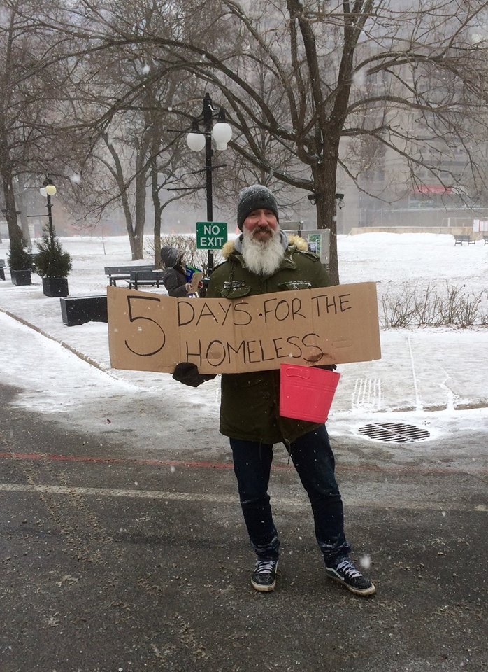 Vivre dehors, comme un itinérant, le conseiller de Verdun Sterling Downey connaît. Depuis trois ans, il passe une semaine au centre-ville dans le cadre de l’événement «Cinq jours pour les sans-abris», qui vise à amasser des fonds pour des organismes venant en aide aux gens dans la rue. Cette année, le défi a été beaucoup plus ardu puisque confronté aux éléments d’une météo peu clémente.