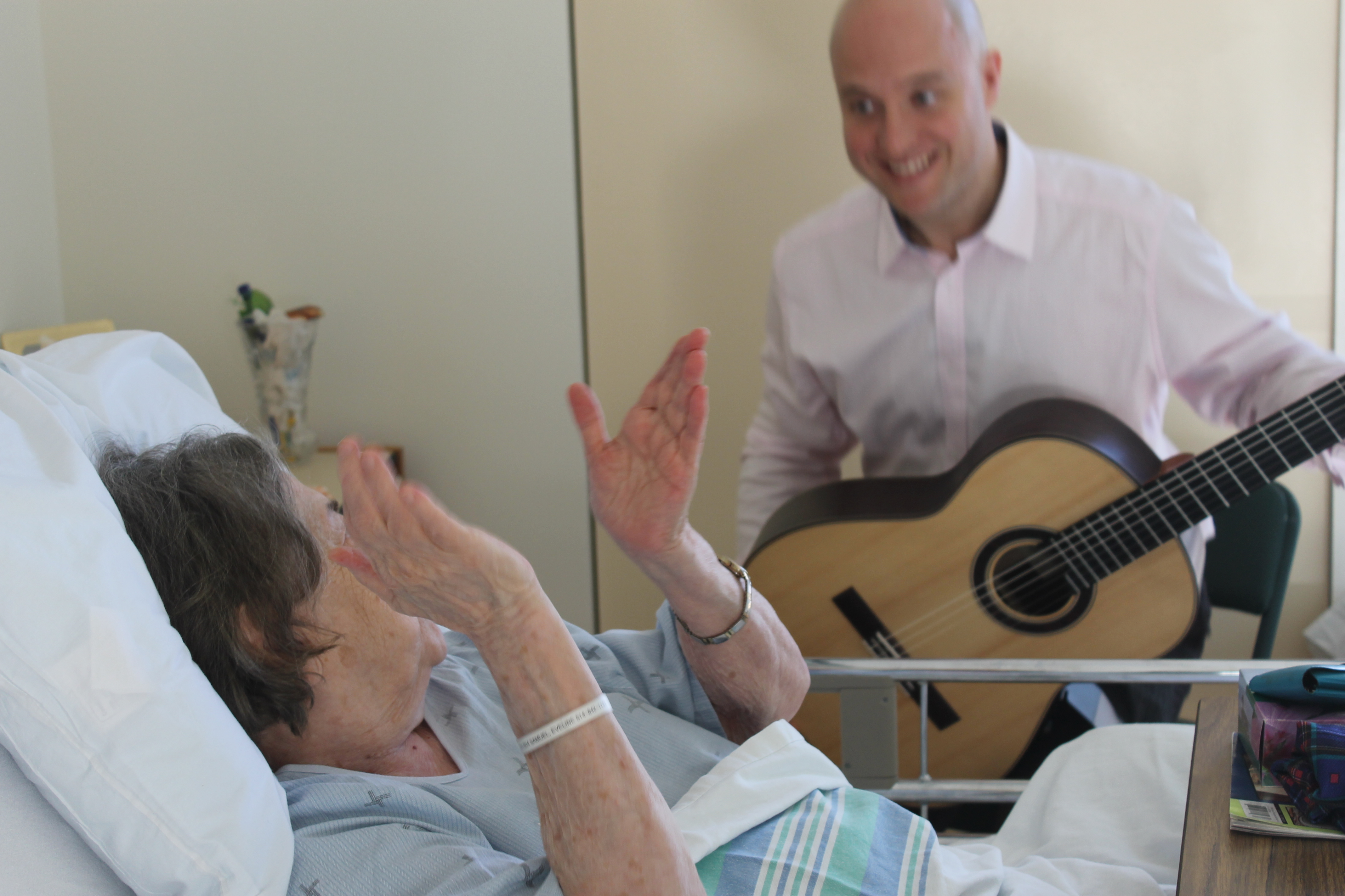 «Ils nous disent que la musique leur fait du bien, que ça les détend et qu’ils en oublient la douleur, raconte-t-il. Les gens du corps médical nous parlent parfois de malades qui ont marché plus longtemps pour assister au concert ou qui ont retrouvé l’appétit ce jour-là».