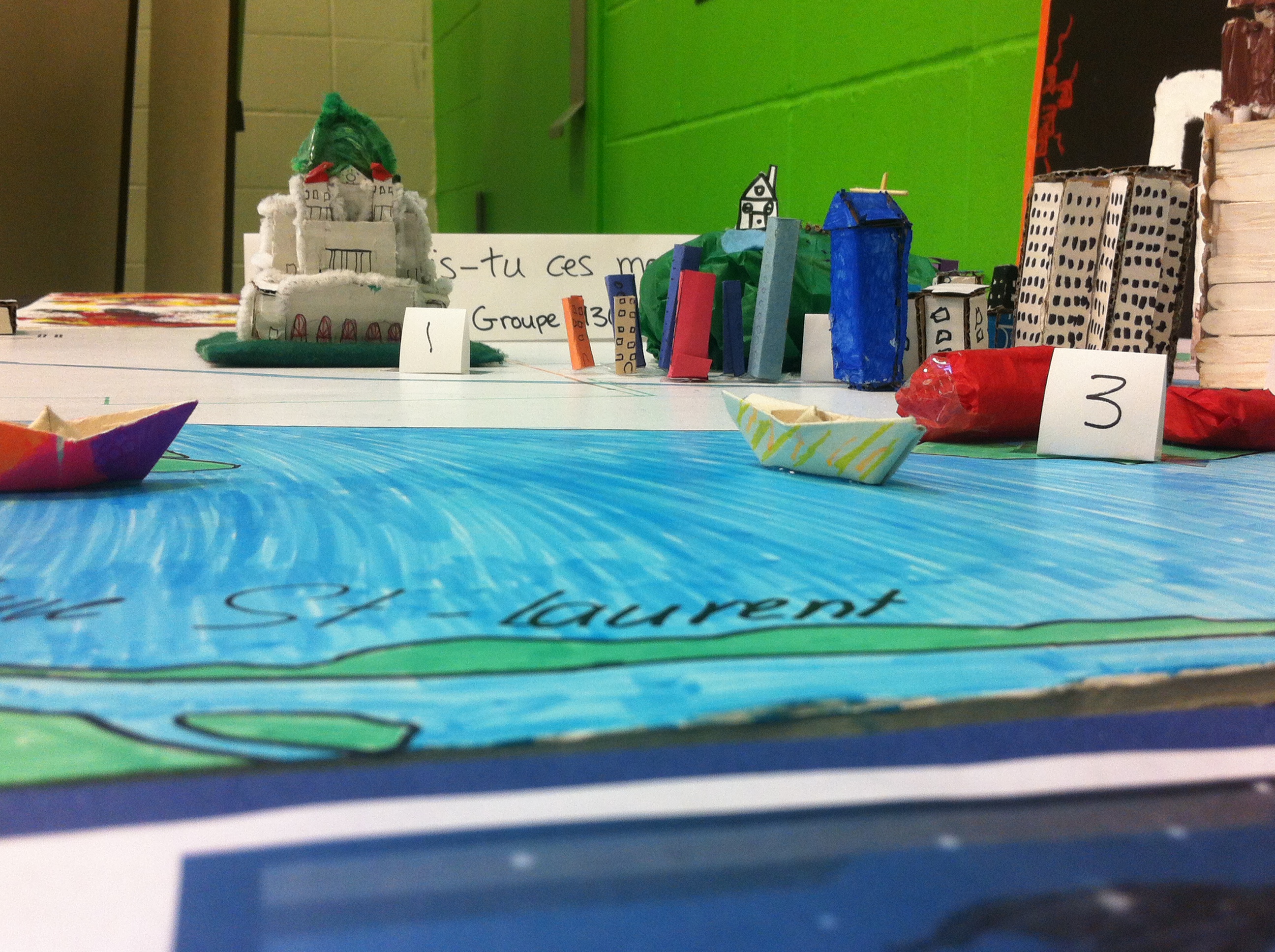 Deux éducatrices du service de garde, l’infographiste Paola Hoyos et la professeure d’arts plastiques Danielle Lemas ont pris en charge la présentation de l’exposition Montréal. Chacun des 20 enfants de 5e et 6e ont recréé les immeubles de Montréal.