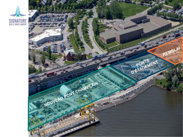 Suivra la construction des trois ponts d’étagements au-dessus du boulevard René-Lévesque et du tunnel piétonnier qui relie la Pointe-Nord à la Pointe-Sud. Ces aménagements vont débuter cette année et se poursuivre jusqu’à la fin 2018, au minimum.
