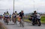 En fin de peloton, Pierre Lavoie est passé comme les autres cyclistes, sous les encouragements du public.