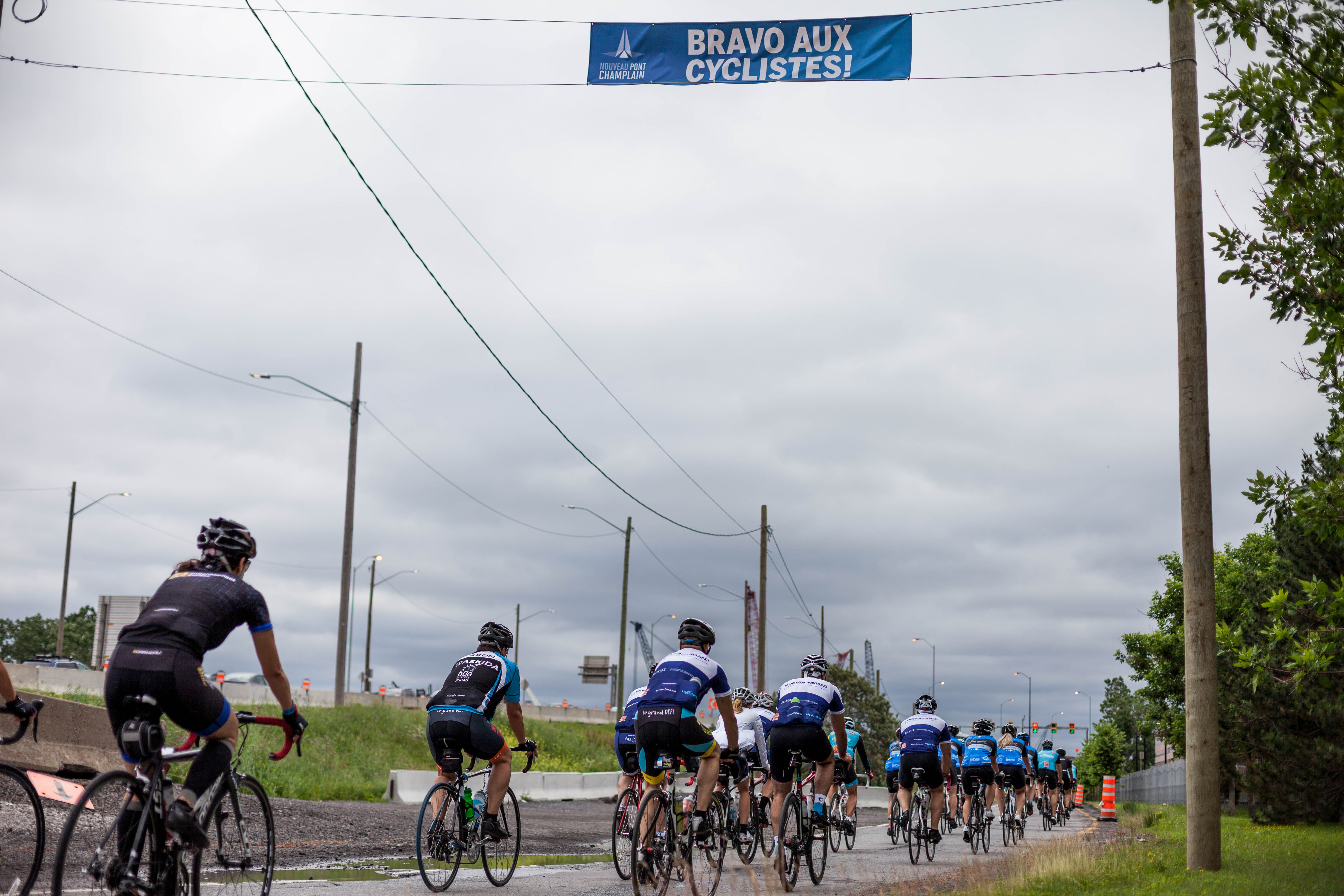 Au départ du centre-ville de Montréal, les cyclistes se sont lancés en direction de l’île en passant par l’autoroute Bonaventure. Le trajet les a amenés sur la piste cyclable, derrière Place du Commerce, puis sur l’Estacade pour les conduire du côté d’Howick.