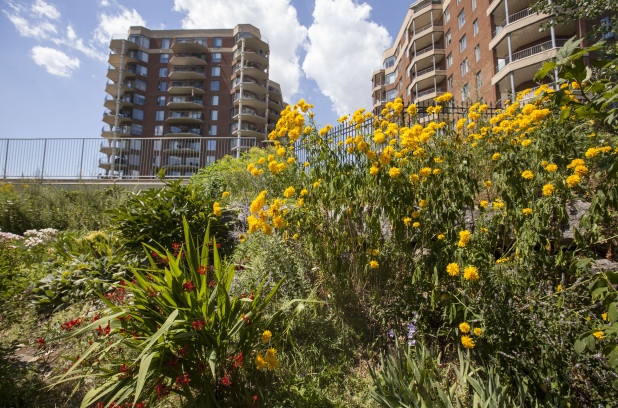 Une partie du pré fleuri entretenu par Thérèse Romer entre les condos Brises du fleuve et la piste cyclable a été tondu le 13 juillet, au grand désespoir de la dame de 91 ans. Cet espace faisait partie de la politique de gestion différenciée des espaces verts de l’arrondissement, qui vise à laisser certaines parcelles de terrain non tondues, donnant lieu à plus de diversité que le gazon.
