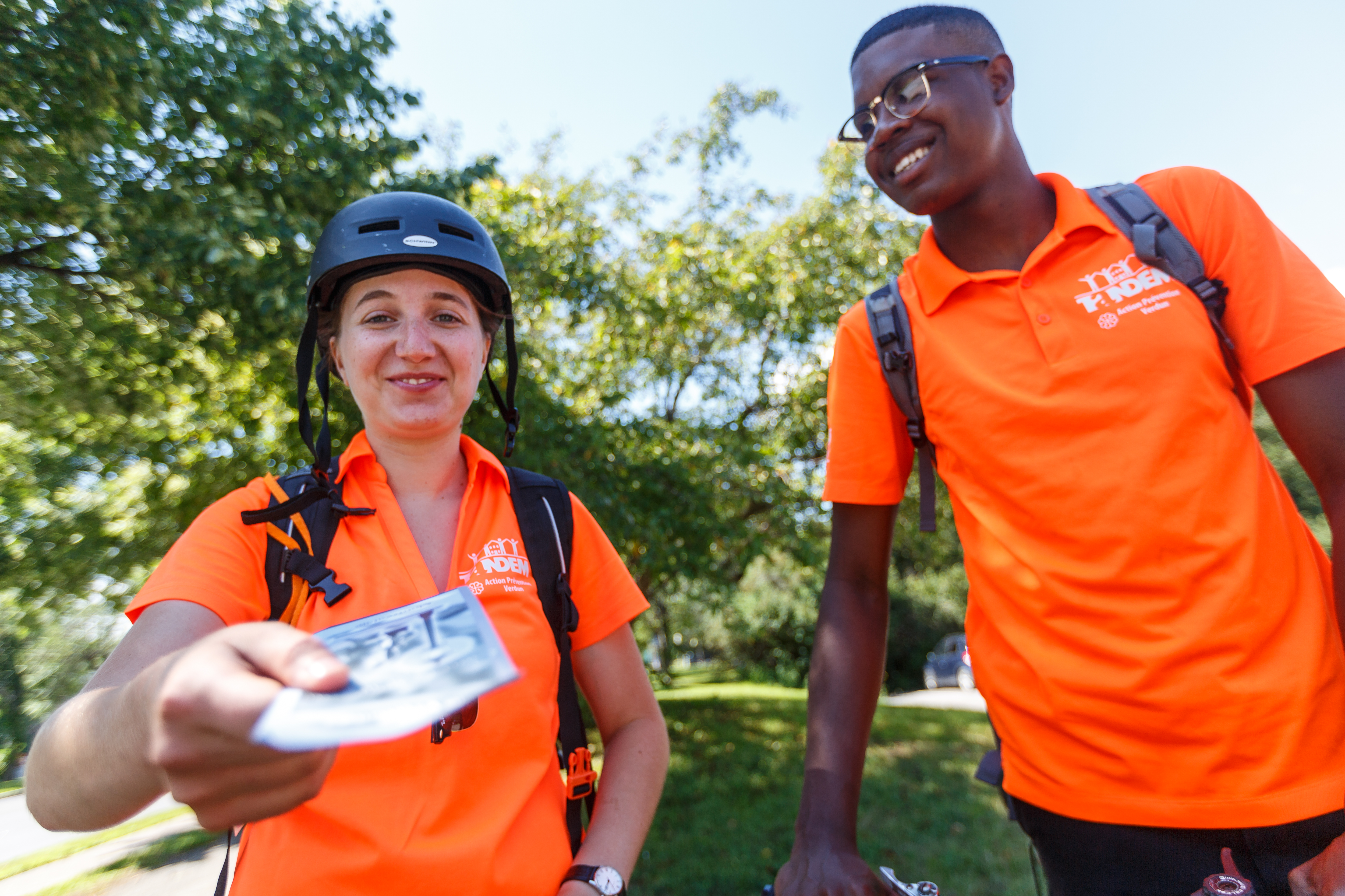 Des coopérateurs des berges de l’organisme à but non lucratif Action Prévention Verdun sillonnent L’Île-des-Sœurs et la terre ferme pour sensibiliser le public aux règles de bonne conduite de l’arrondissement. Faciles à repérer avec leur t-shirt orange, ils se déplacent à vélo pour couvrir l’ensemble du territoire, tout en prenant le temps d’aller à la rencontre des passants.