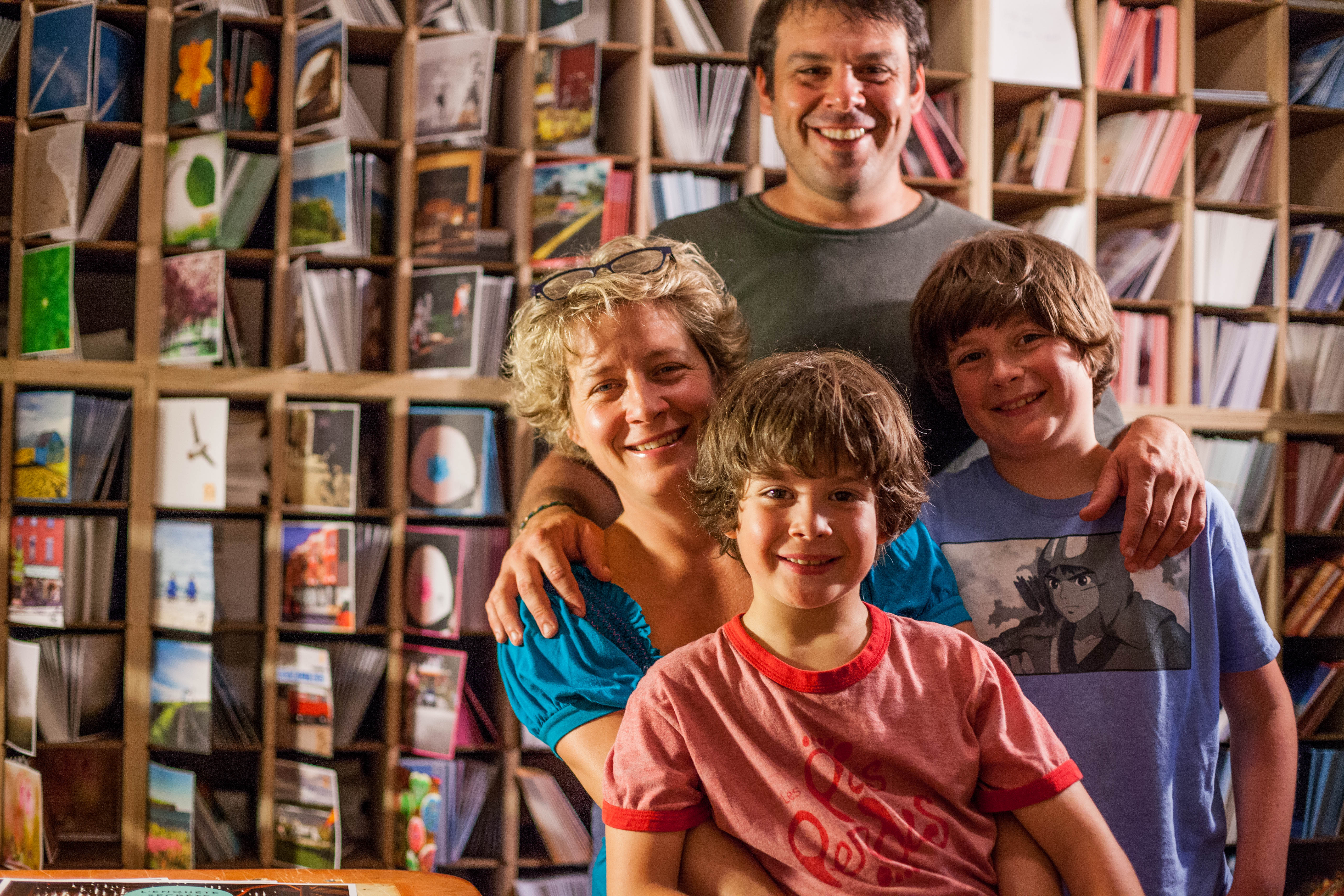 Dans le petit atelier du deuxième étage de leur résidence de la 3e Avenue, à Verdun, les murs sont transformés en un grand atelier qui déborde d’images. Cartes postales, cartes de souhaits et affiches de leurs deux livres, les photos prises par Julie sont à la fois colorées et personnelles, où on retrouve parfois ses deux fils, Éloi et Renaud.