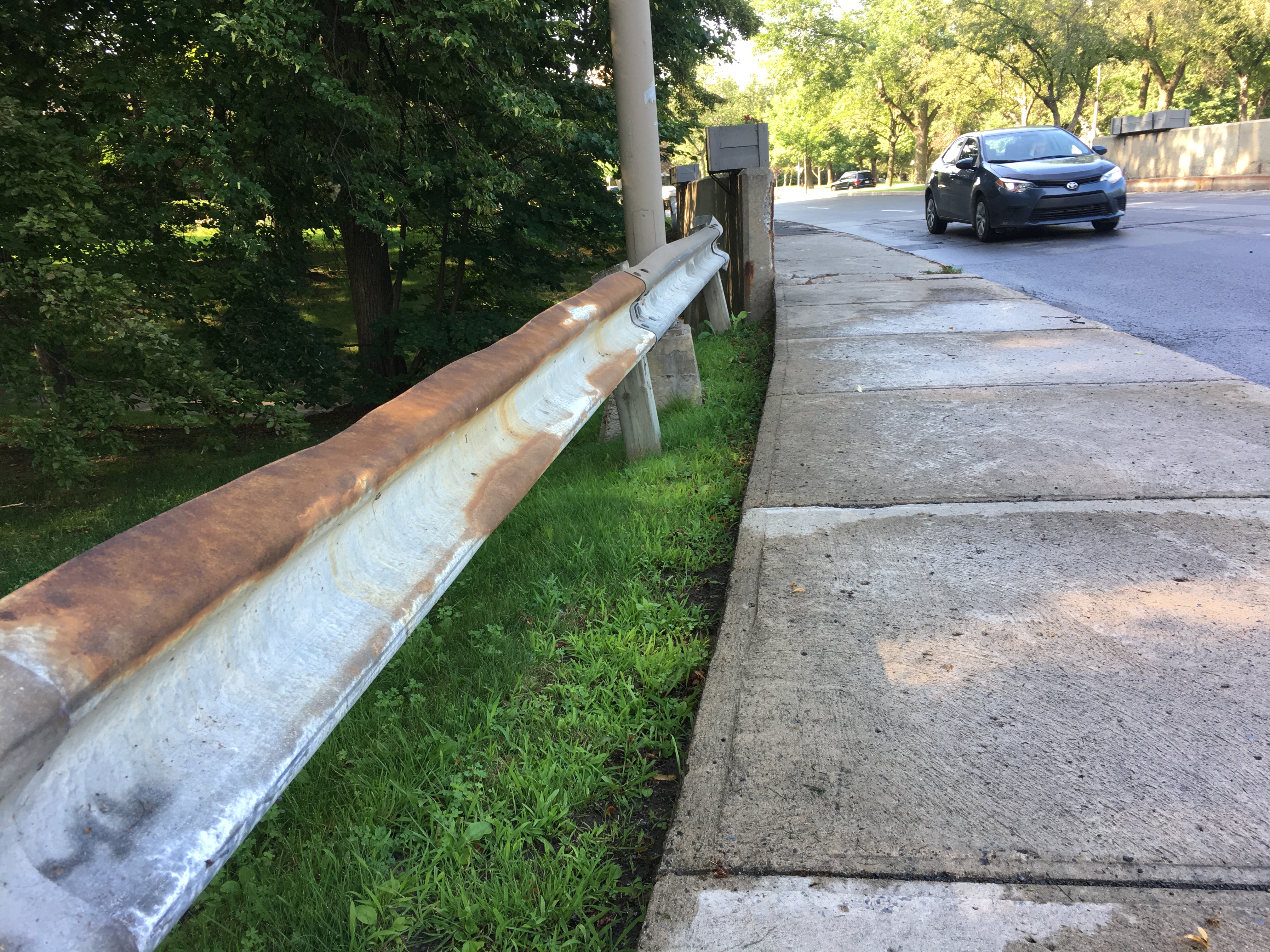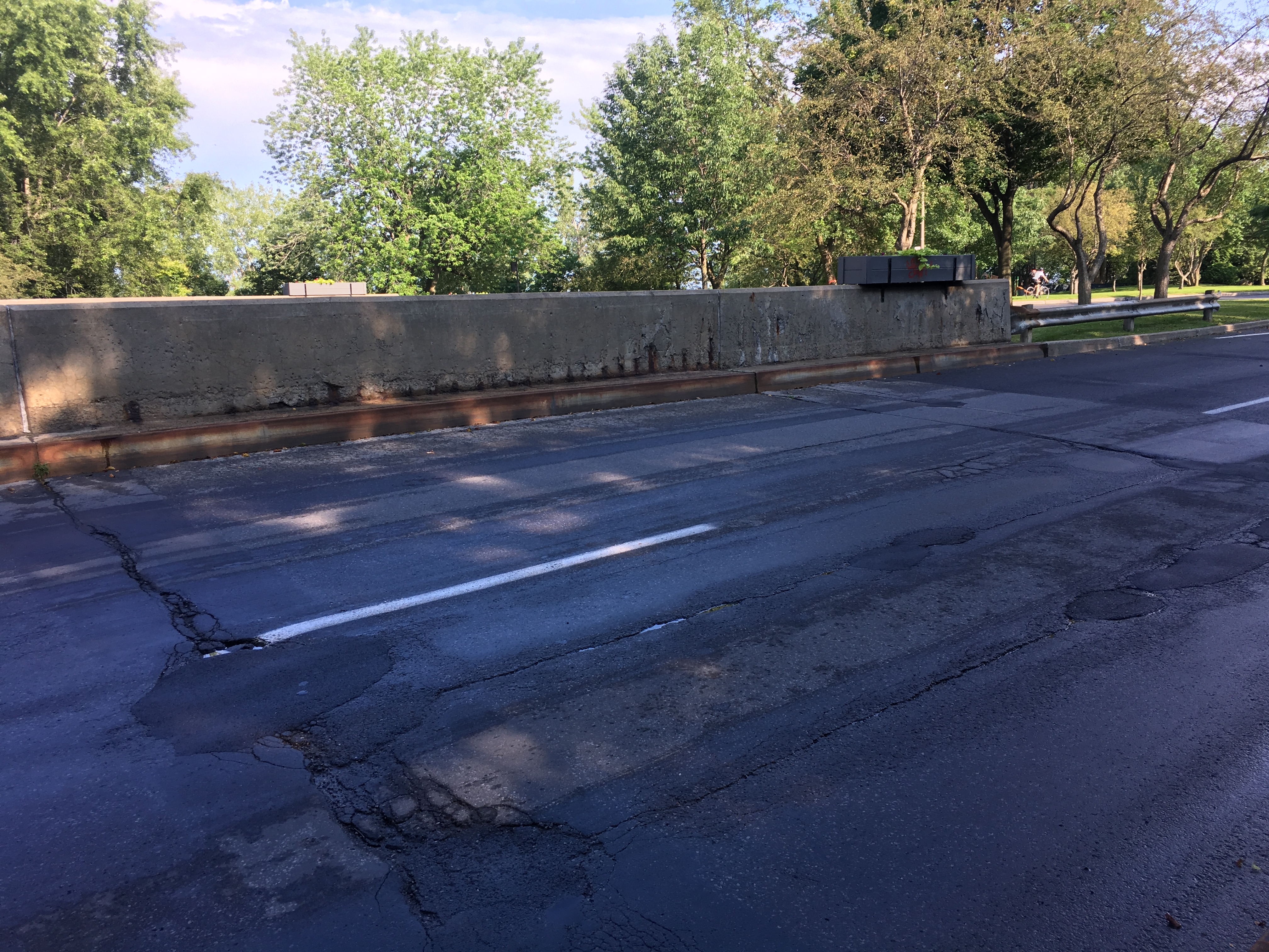 À l’est de la rue Darwin, les ponts d’étagement du boulevard de l’Île-des-Sœurs font mauvaise figure avec des fissures apparentes et des barrières de sécurité rouillées. Parmi les 583 ouvrages dont s’occupe la Ville de Montréal, la partie située en direction Ouest se classe 5e et celle en direction Est, 9e du classement des pires structures du réseau routier.