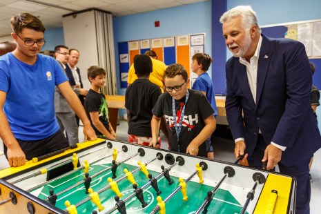 Le premier ministre a ensuite fait le tour du local et rencontré les enfants qui fréquentent le camp de jour estival, guidé par un jeune qui l’avait accueilli, Colin Tassé. À 17 ans, ce dernier est à la fois un des jeunes qui fréquente l’organisme et un employé puisqu’il y a trouvé son premier emploi étudiant comme aide-moniteur.