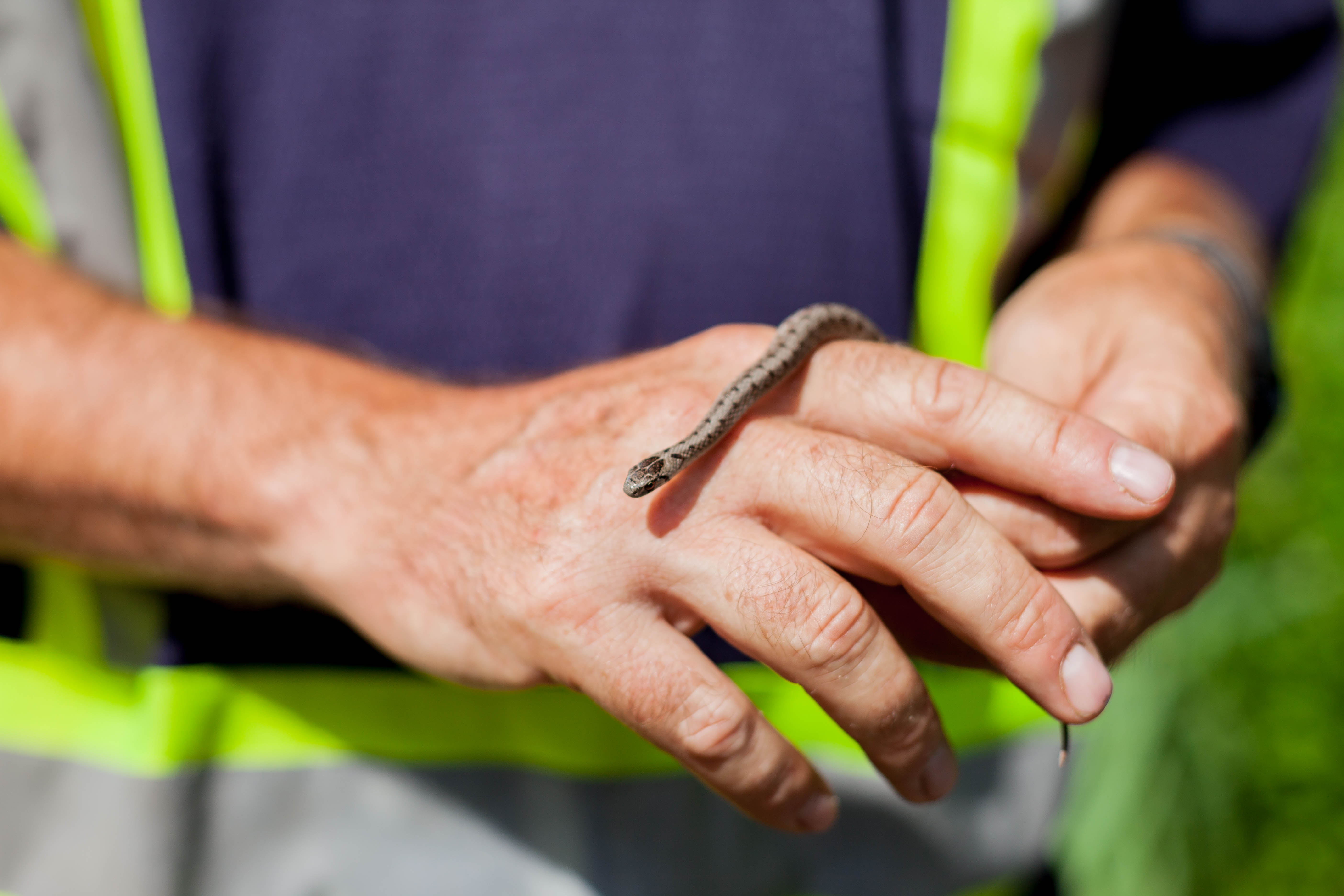 «Ça y est! On en a une», annonce-t-il, ajoutant immédiatement qu’il s’agit en fait d’une couleuvre rayée, très commune. Il la plonge tout de même dans un sac de tissu. Elle sera déplacée en même temps que ses lointaines cousines.