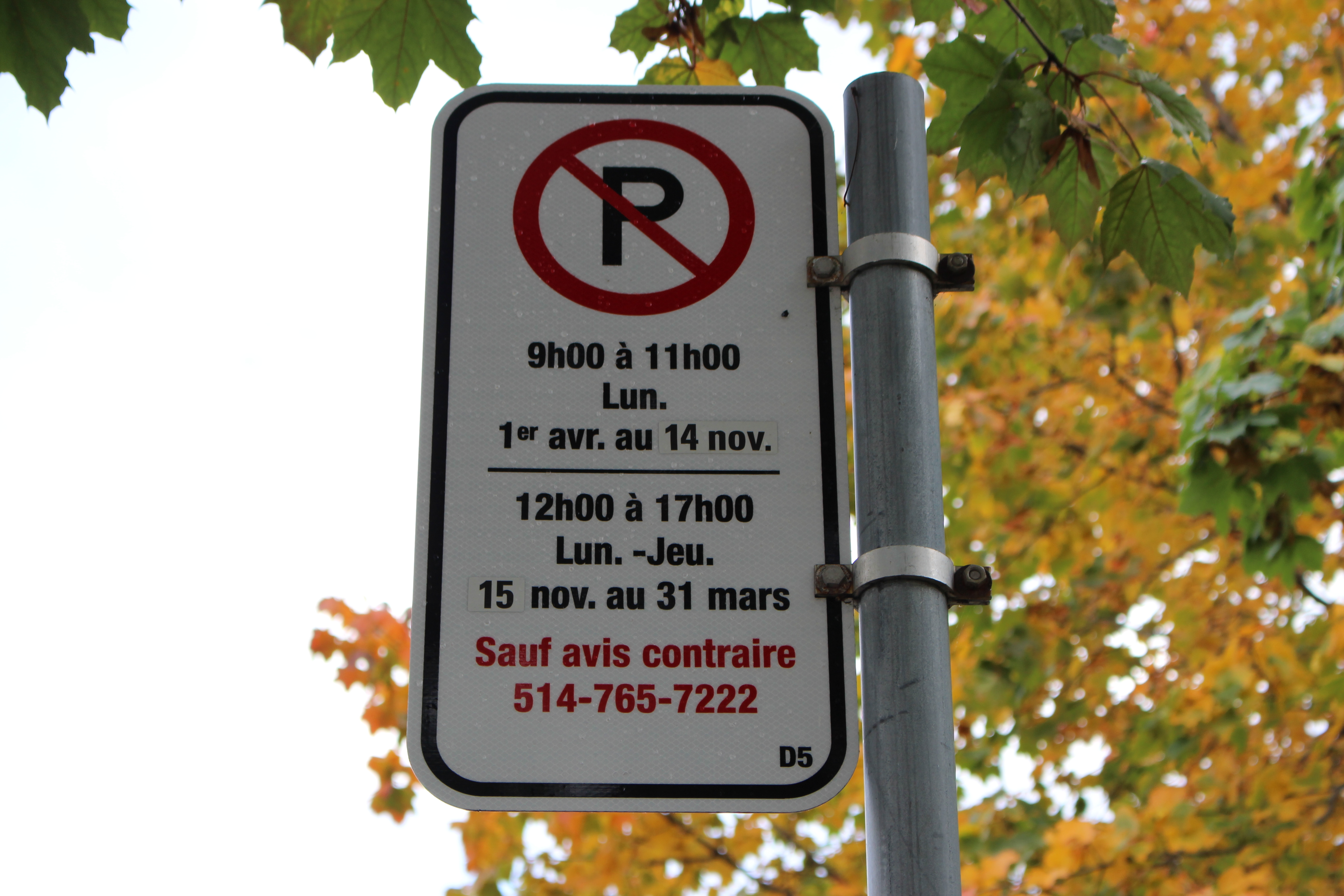 «La chute des feuilles est plus tardive et l’arrondissement doit donc prolonger l’horaire d’été du stationnement afin de pouvoir ramasser les feuilles mortes durant les périodes d’entretien prévues, avant l’arrivée de l’hiver», explique l’arrondissement.