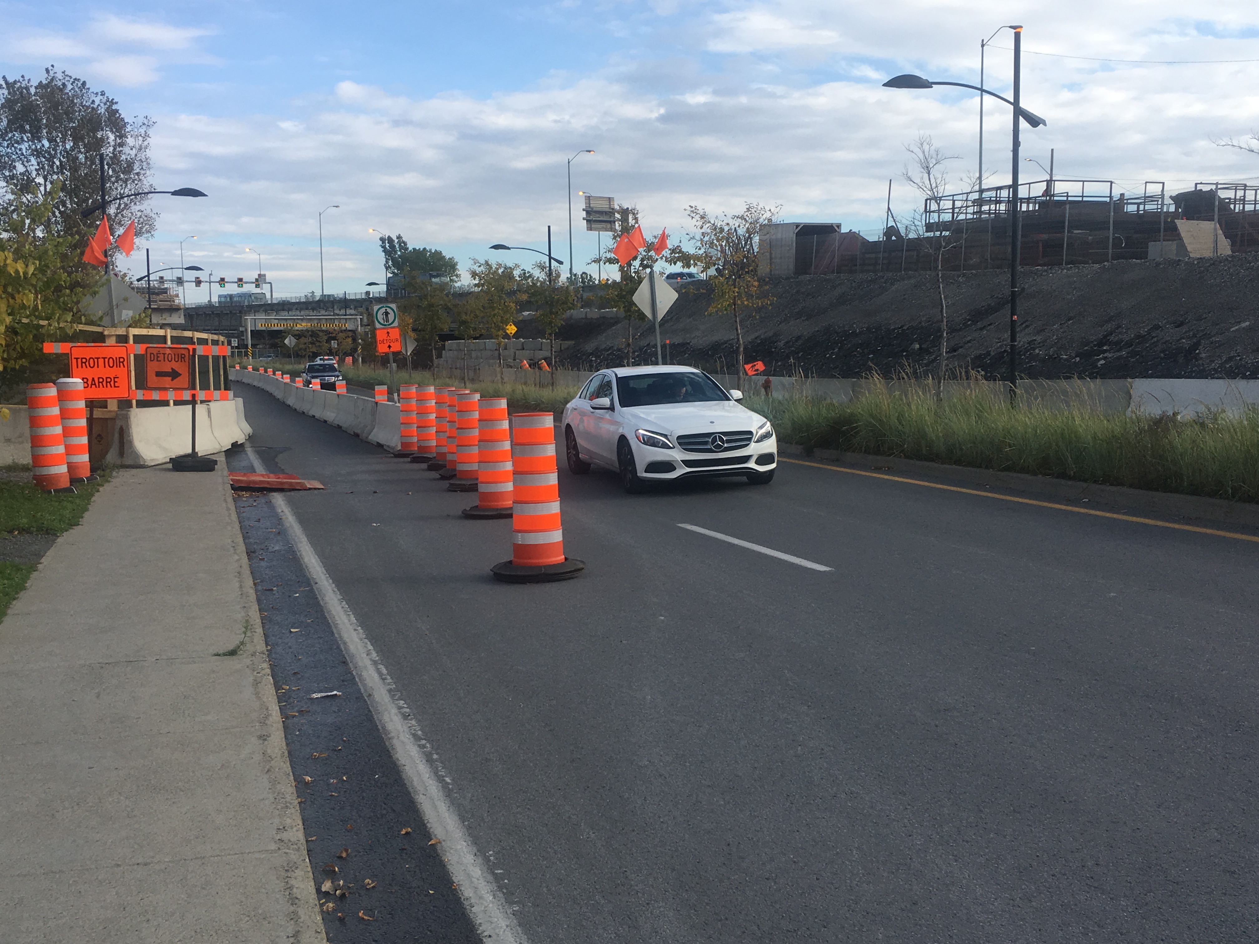 Une voie est déjà retranchée depuis la mi-octobre pour permettre les travaux préparatoires en vue de la construction des ponts d’étagements de l’approche ouest du nouveau pont Champlain.