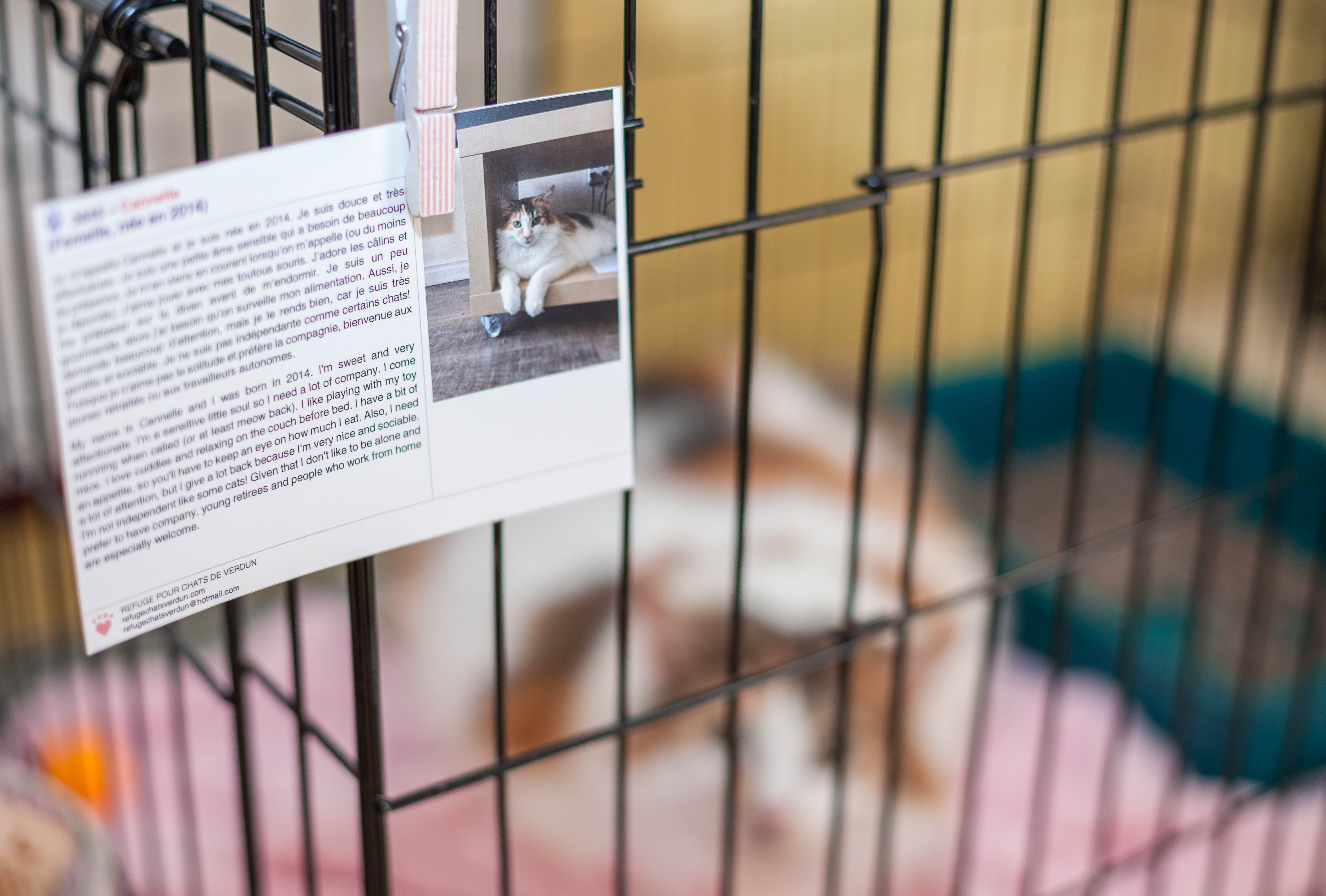 «C’est important d’être présents aux journées d’adoption, car ça met le chat plus à l’aise donc on augmente ses chances d’être choisi. En plus, Argyle est vraiment stressé et ne se montre pas sous son meilleur jour, alors on va pouvoir décrire son caractère habituel. Quand ils sont choisis, on est tristes parce qu’on s’est attachés, mais on sait que c’est le mieux pour lui et nous on va pouvoir aider d’autres chats», témoigne le couple.