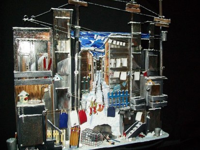 Par exemple, tous mes poteaux électriques sont faits à partir de manche à balai. Quand il pleut à Verdun et qu’il y a des inondations dans les caves, le jour des vidanges je me promène avec ma scie et je récupère les manches.