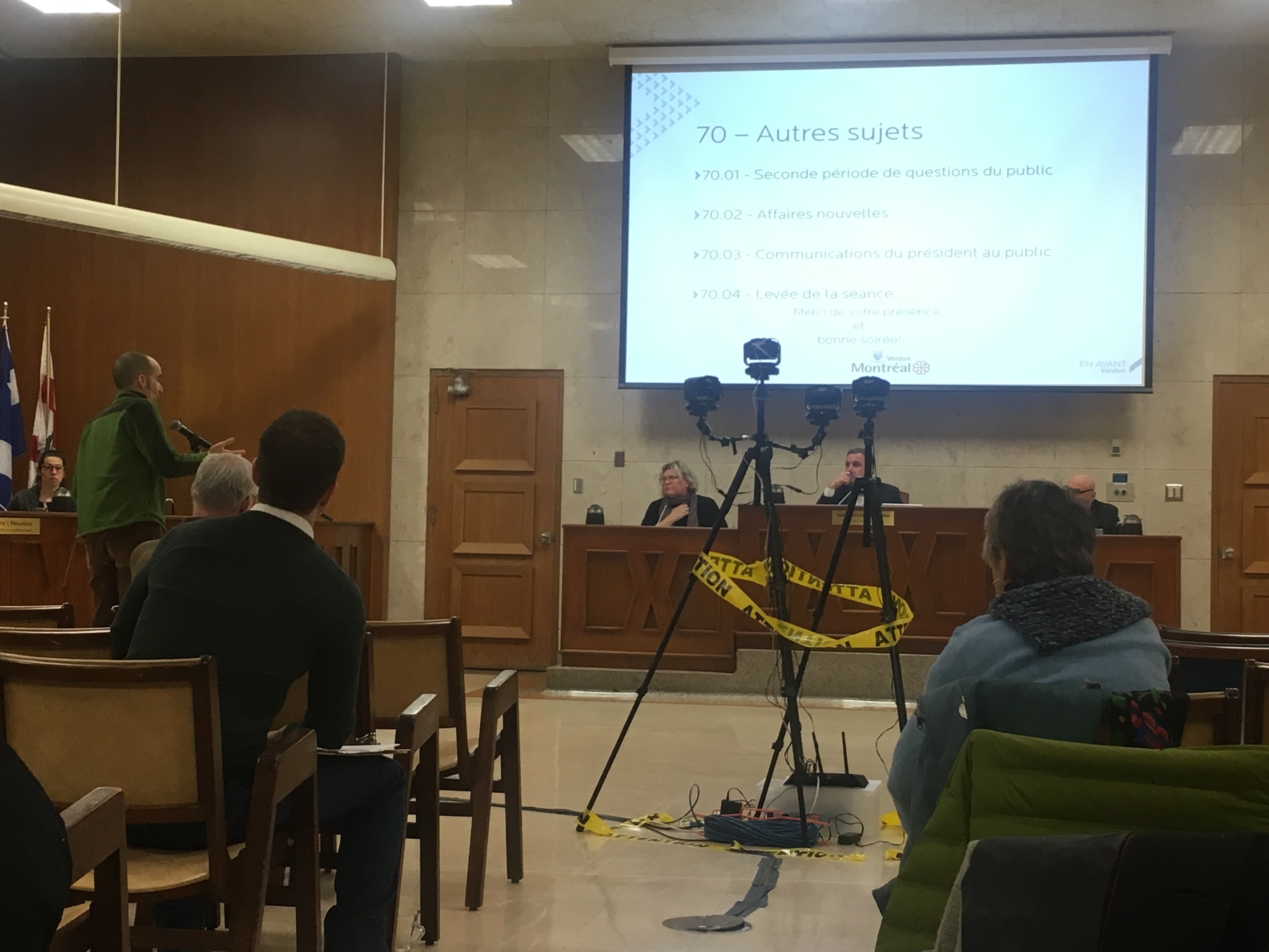 Les élus se sont mis d’accord pour déposer une motion afin de retirer la limite de trois interventions sur un même sujet lors d’un conseil d’arrondissement pour faciliter la participation des citoyens. L’annonce a été faite par la conseillère d’arrondissement, Marie-Andrée Mauger, qui a souligné la difficulté de garder le compte lorsque les citoyens utilisent des mots clés pour aborder un même sujet, ce qui peut créer des surprises. «Ceux qui ne peuvent finalement pas parler sont souvent ceux qui s’inscrivent tardivement. Ils attendent pendant une heure leur temps de parole et soudainement on annonce que les trois questions ont été posées. Or, ce sont ces gens-là qu’on veut entendre parce qu’ils sortent de l’ombre», souligne-t-elle. La motion a été appliquée immédiatement.
