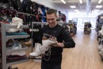 Le professionnel âgé de 29 ans réalise environ 150 aiguisages par semaine. Il parle de son métier comme d’une occasion de parler de ce qu’il aime, même s’il n’a pas réussi à percer au hockey.