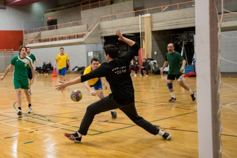 Ils sont une quinzaine d’adultes à se retrouver les mercredis soirs pour s’entraîner dans le gymnase de l’école Champlain. Tous sont des amateurs, certains ont de l’expérience au handball et d’autres viennent découvrir le sport qui repose sur trois fondements: courir, sauter et tirer.