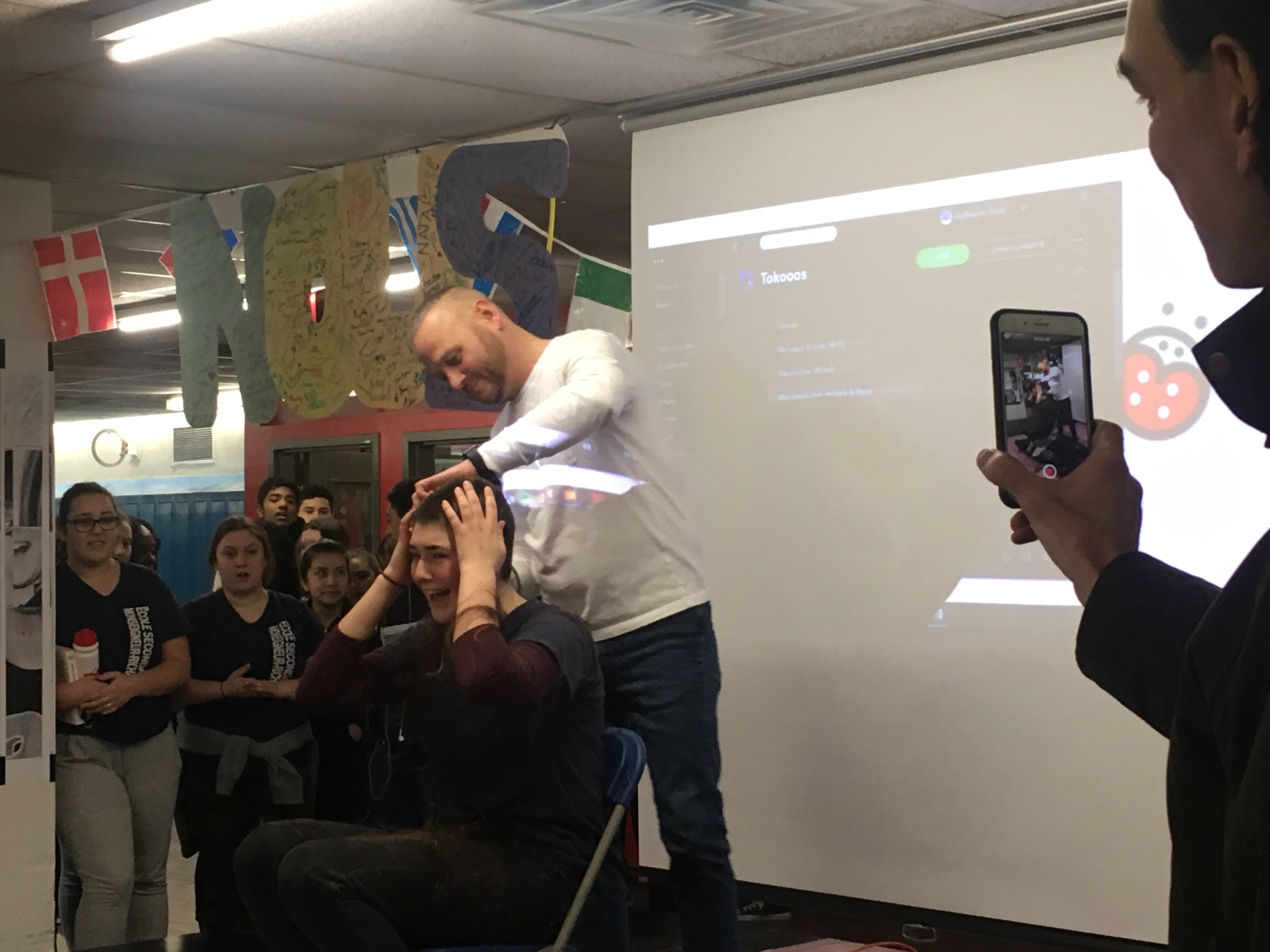 En à peine 24h, la direction de l’établissement s’est organisée pour permettre à l’étudiante de partager son expérience avec ses camarades. C’est même l’adjoint administratif Jérôme Drouin qui a tenu un salon de coiffure pendant cinq ans qui s’est chargé de la coupe. Pour l’occasion, nombre d’élèves sont arrivés en avance à l’école pour encourager et féliciter la Verdunoise.