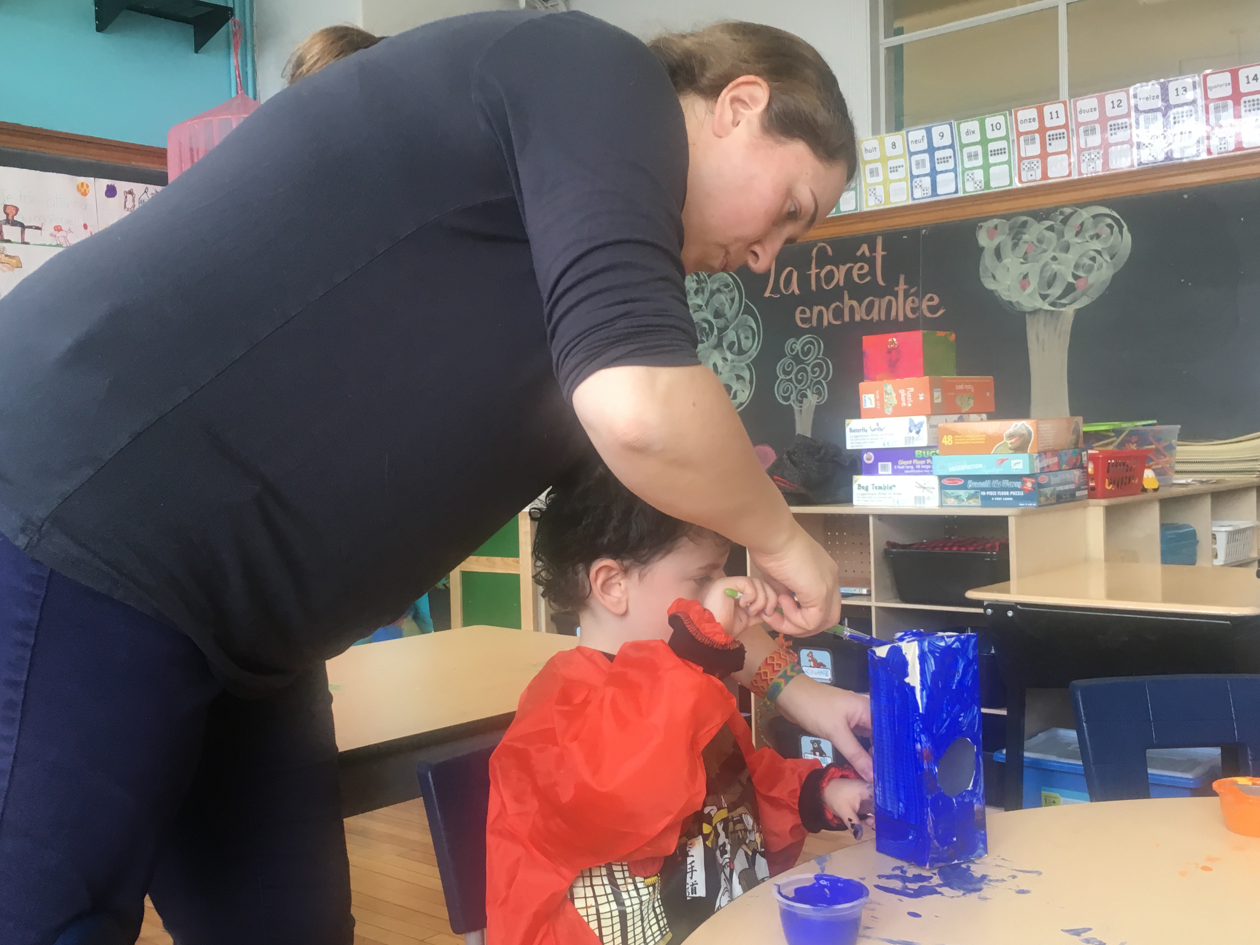 Les maternelles ont aussi planté des semis et les ont entretenus pour qu’ils grandissent un peu d’ici le marché. Ils ont aussi récupéré des boîtes de lait qu’ils ont peint et dans lesquels ils ont fait un trou pour que par la suite, les oiseaux s’en servent comme mangeoires.