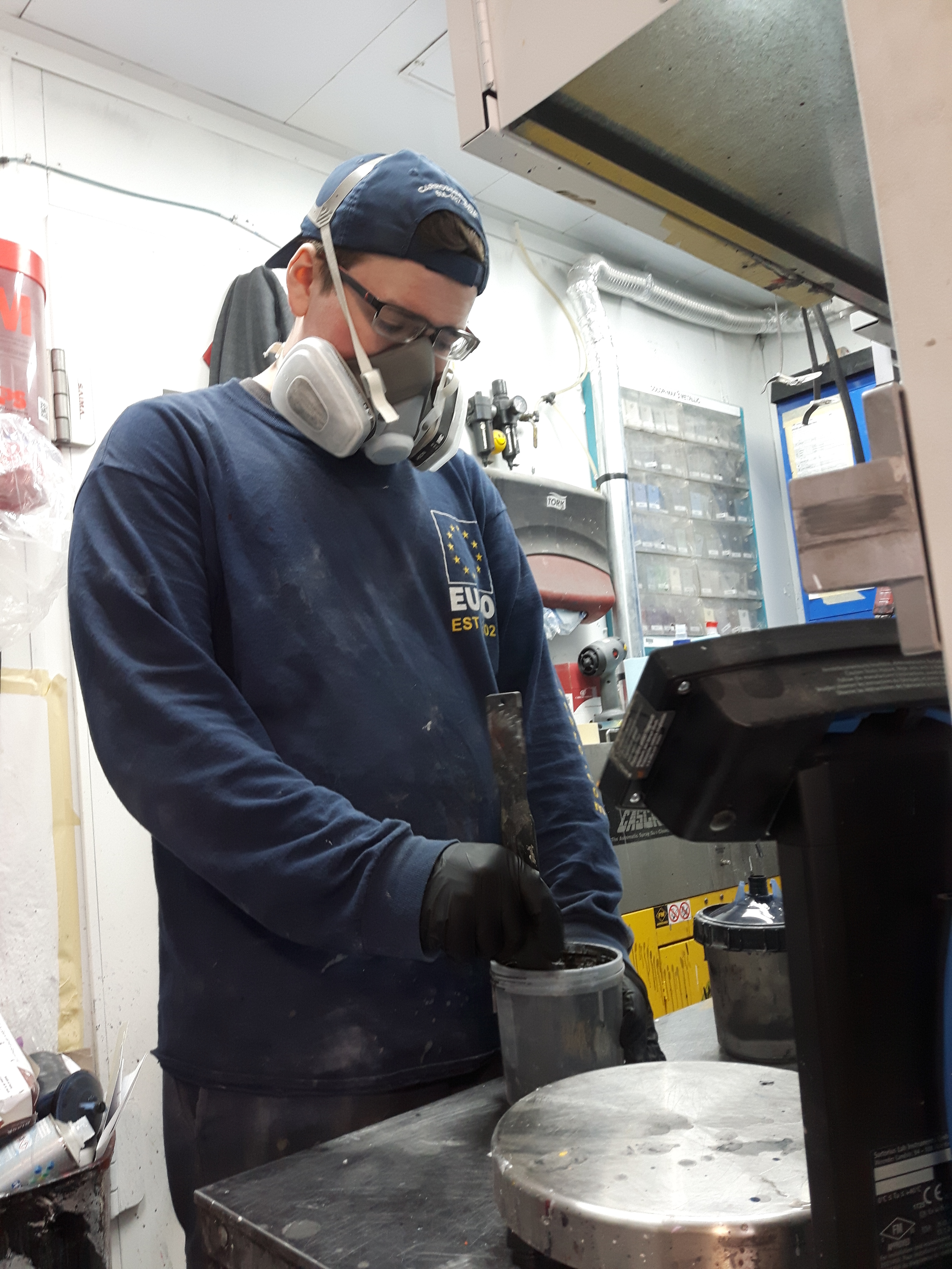 Il a notamment découvert des étapes de préparation avant d’appliquer la peinture, de nettoyage et d’essuyage pour retirer les poussières. Aux Olympiades, il devra assembler un pare-choque, appliquer une couche d’apprêt, peinturer et polir.