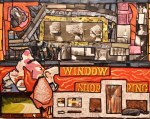Depuis septembre, l’Impatient Ryan Day s’applique à réaliser son tableau de 28 cm sur 35 cm. Il a commencé par recouvrir sa toile d’un fond rouge en acrylique, puis il s’est inspiré d’images publiées dans des magazines National Geographic des années 70 qu’il a ensuite collées avant de terminer avec du feutre.