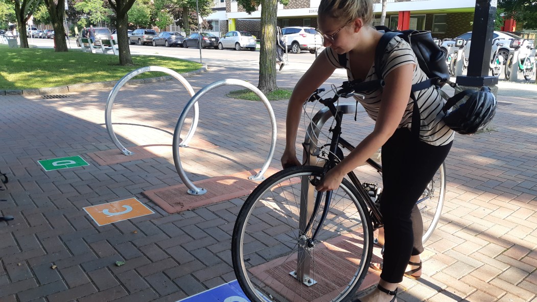 «Certains sont plus larges donc est-ce que le vélo a plus d’appui ou il en a moins, questionne Geneviève Grou, conseillère équipement immobilier urbain. On veut aussi savoir si la barre au centre, qui peut s’ajouter sur tous les modèles, aide à cadenasser le vélo ou elle nuit.»