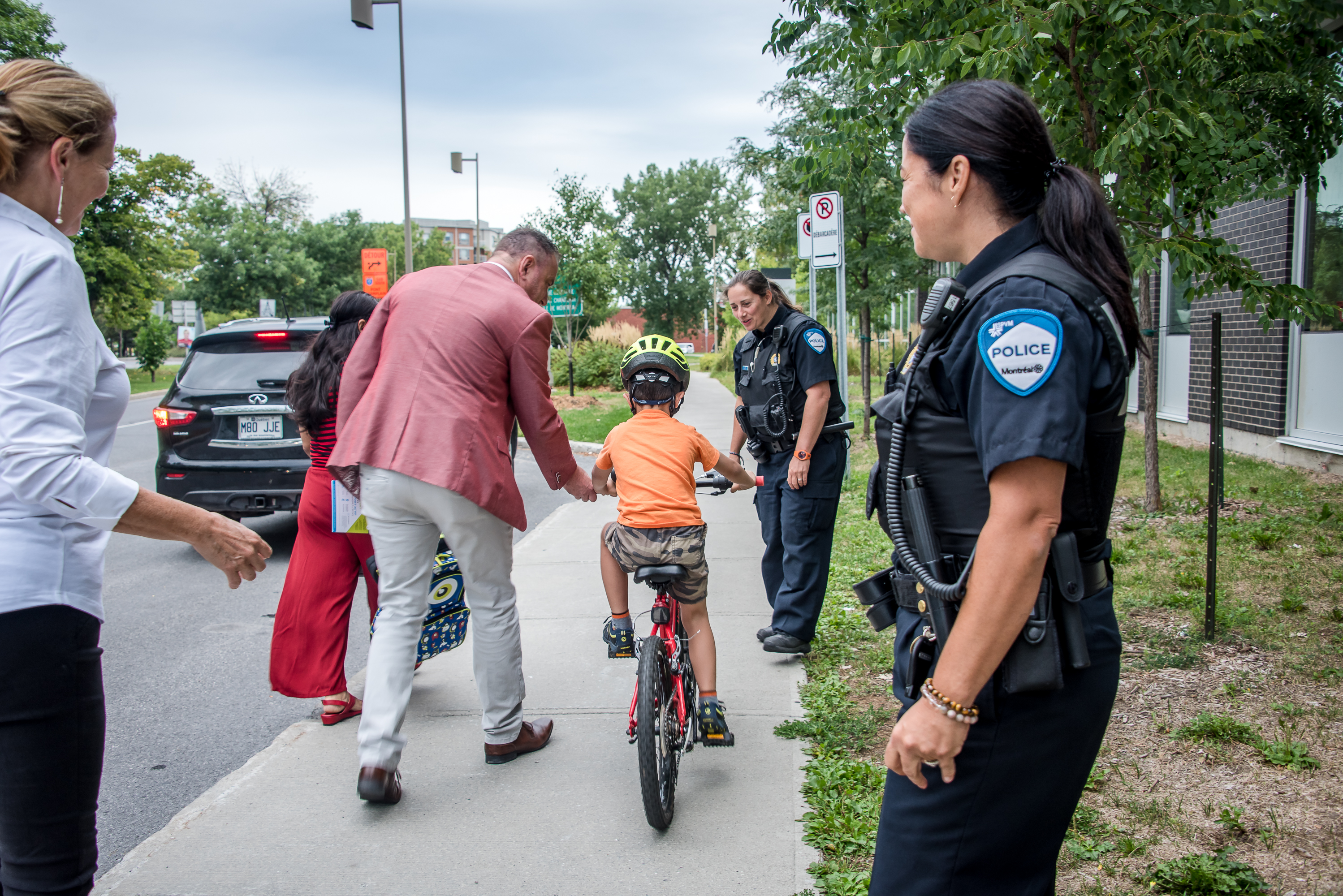 Des policiers et des élus municipaux étaient aux abords de l’école primaire des Marguerite et secondaire Beurling Academy la semaine dernière pour maximiser la sécurité. Ils ont sensibilisé les résidents au transport actif en favorisant les déplacements, comme la marche et la bicyclette. Ils ont aussi rappelé le Code de la route et l’adoption en 2017 du plan local de déplacements de Verdun. La limite de vitesse a été baissée à 30 km/h dans les zones scolaires, ainsi qu’à proximité des aires de jeu.