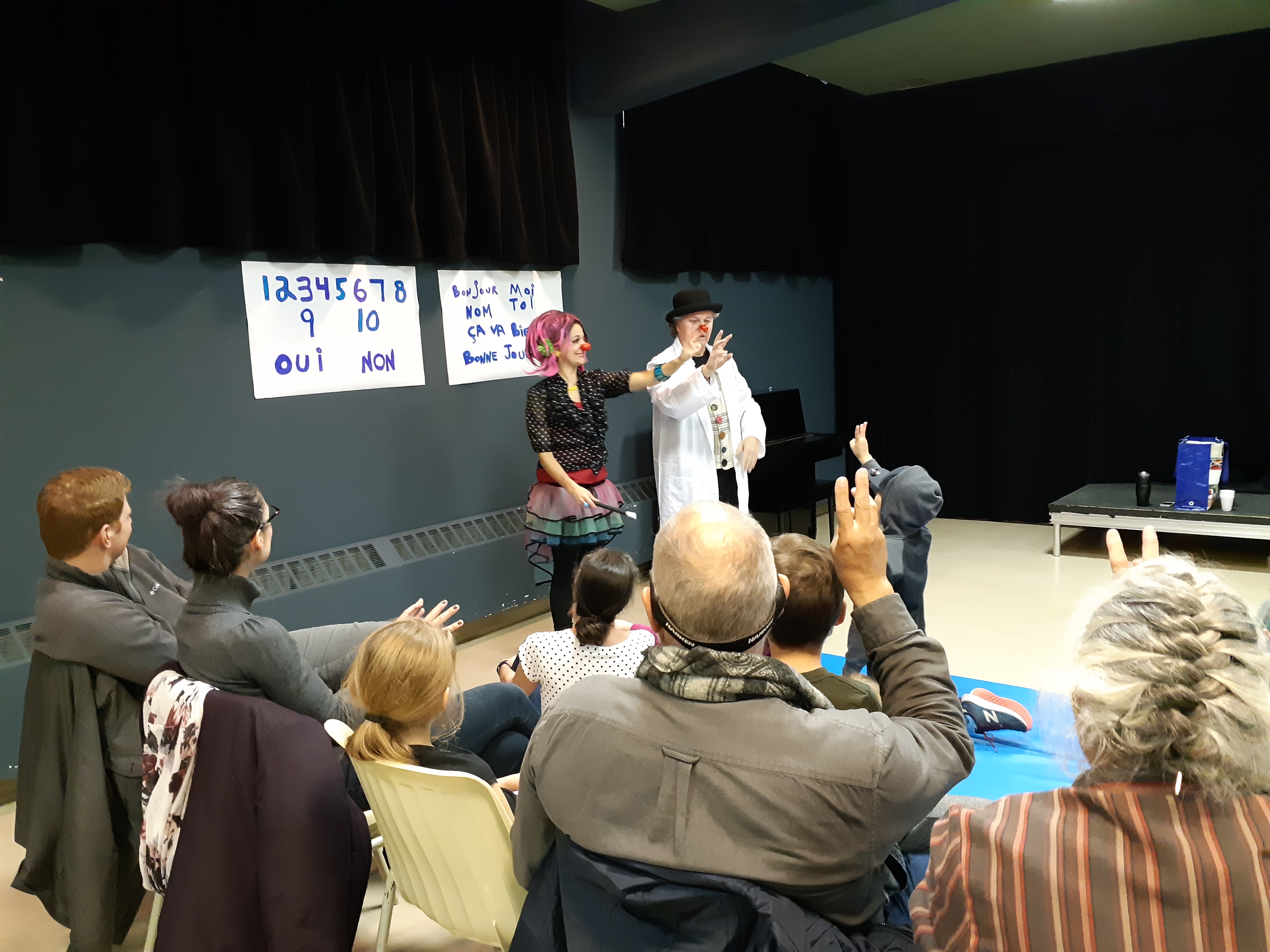 Une vingtaine d’enfants accompagnés de leurs parents ont participé à l’atelier «Les Sourds c’est comme ça!» à la bibliothèque Jacqueline-De Repentigny à Verdun. Ils ont ainsi assisté au spectacle clownesque et au tour de magie présentés par Marie-Pierre Petit et Jacques Hamon dans le cadre du mois de l’accessibilité universelle.