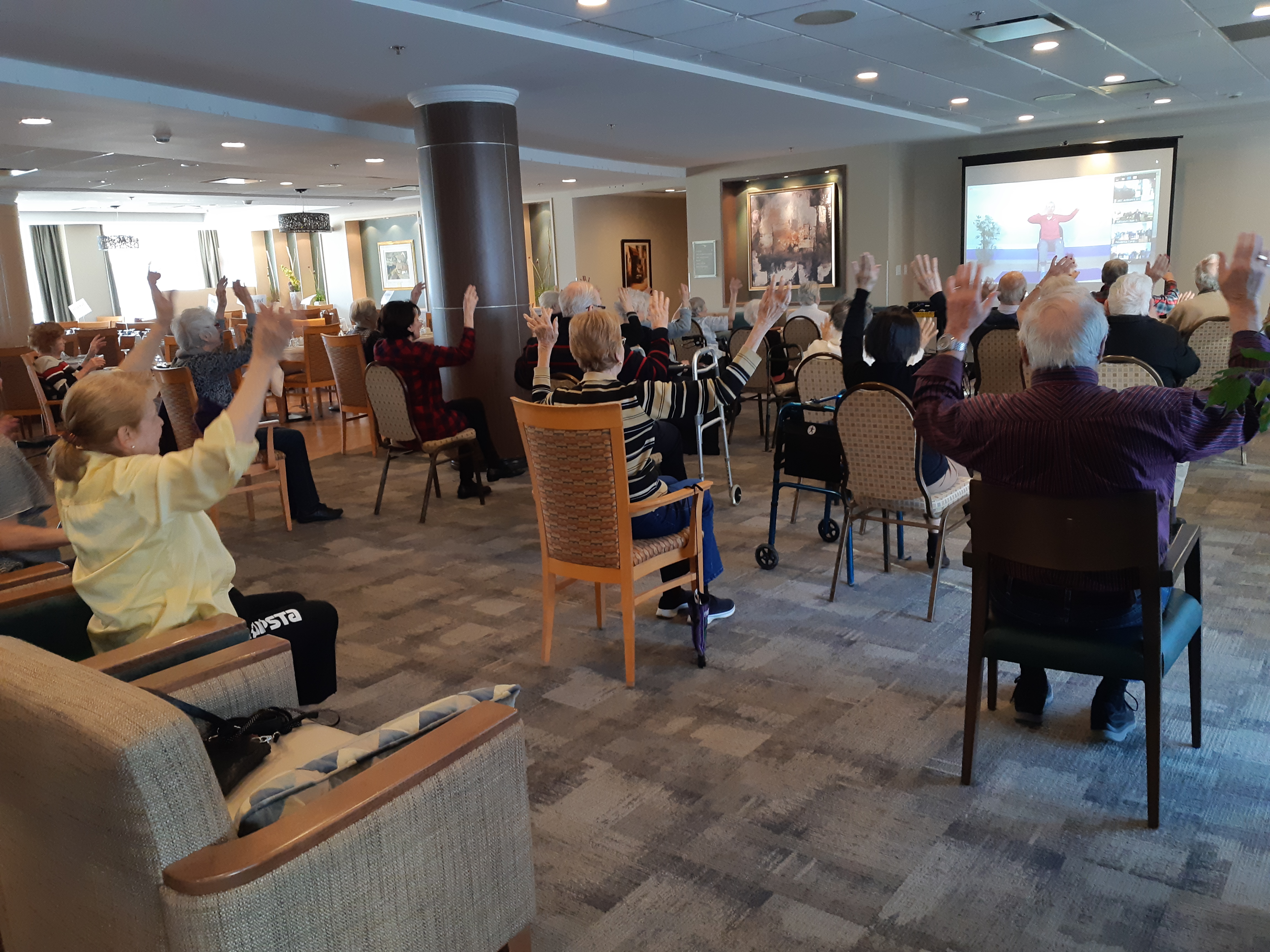 Des Insulaires se sont réunis la semaine dernière dans la salle à manger de la résidence pour personnes âgées Ambiance, à L’Île-des-Sœurs, pour faire de la Zumba sur chaise. Ils ont accepté de participer au programme gratuit Pôle d’activités adaptées (PAA) qui les aide à gérer leurs troubles cognitifs et leur isolement.