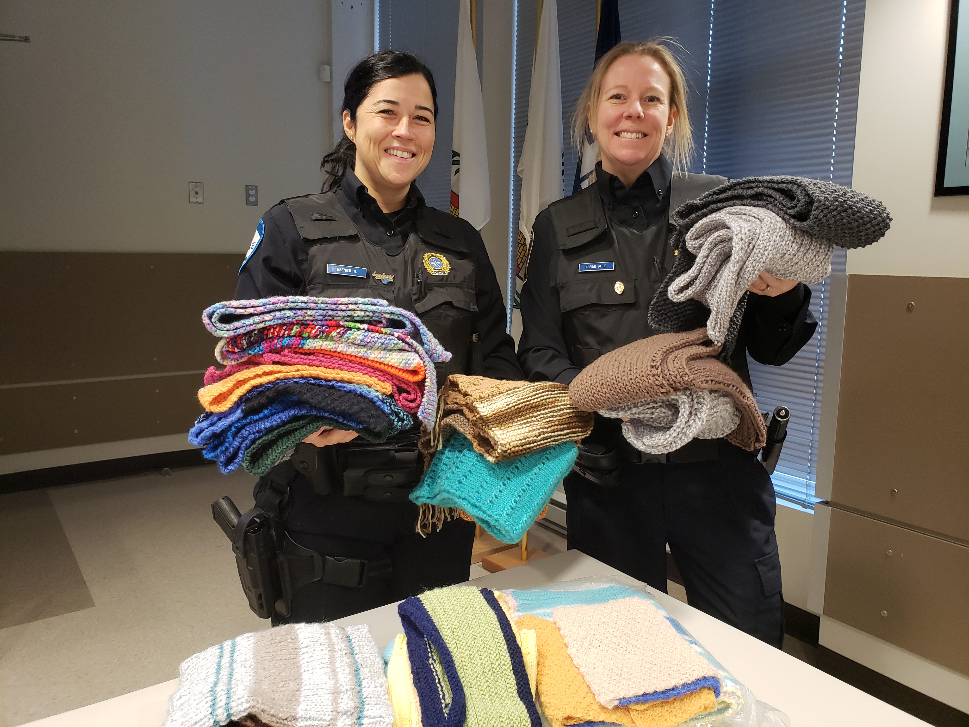 «Ça a commencé petit, l’équivalent d’une dizaine de foulards et cette année, on a même eu des petites couvertes pour bébé. C’est vraiment joli et la laine, c’est chaud, donc c’est pratique», soutient l’agente sociocommunautaire du PDQ 16, Nathalie Grenier.