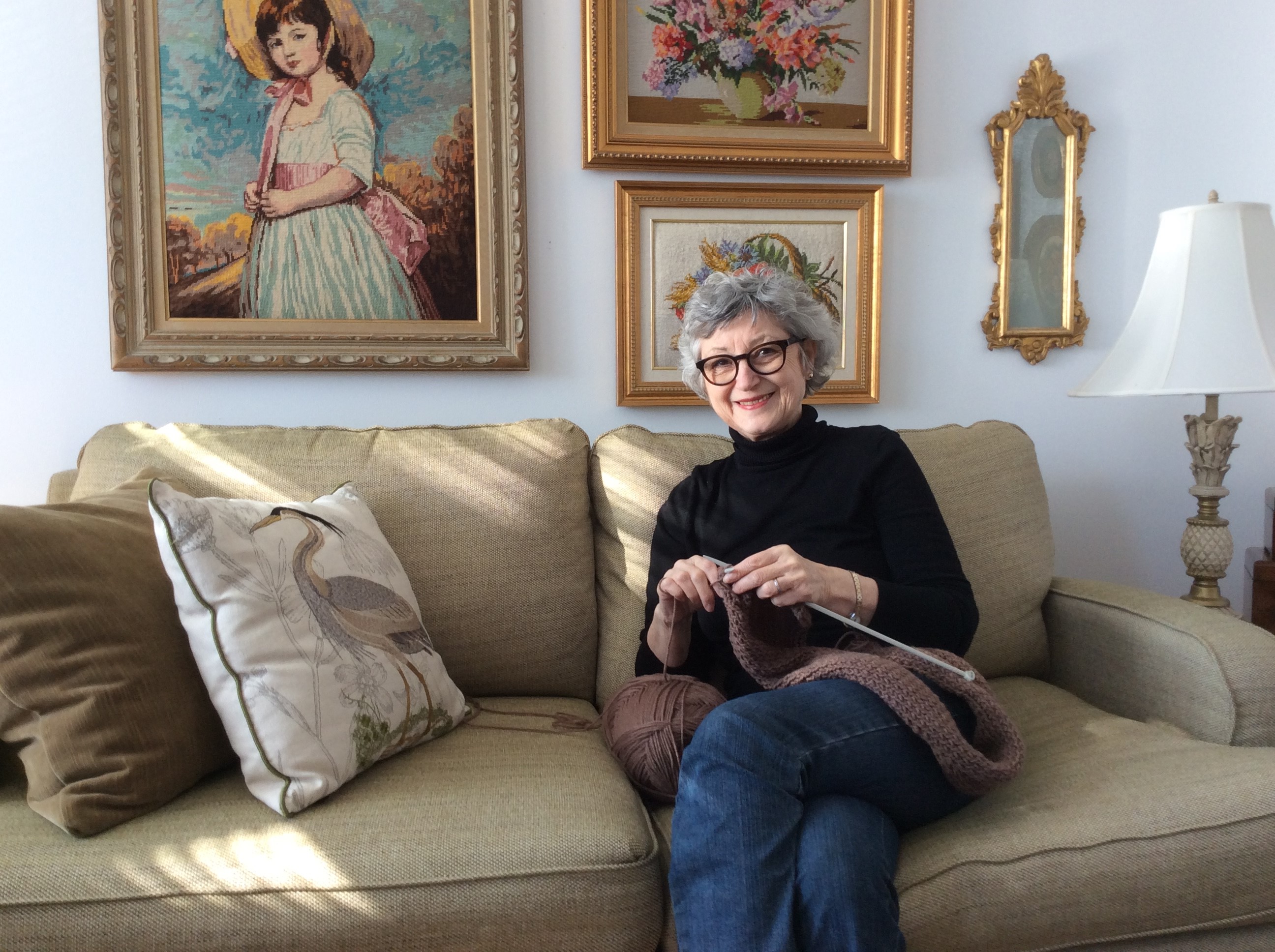 Jocelyne Plante a appris à tricoter à l’école avec les Sœurs, à Joliette, et a déjà fait des robes et des manteaux. À 71 ans, elle conçoit encore des foulards l’automne et l’hiver, notamment pour passer le temps. Depuis trois ans, elle en apporte une vingtaine au PDQ 16.