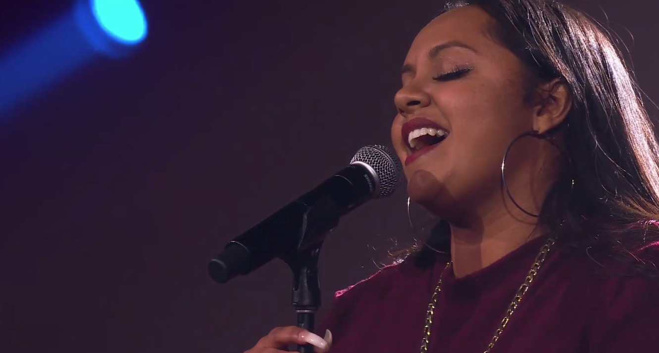 Originaire de L’Île Maurice, dans l’océan Indien, elle a chanté en partie en créole pour la première fois devant sa mère, émue en coulisse, pour lui rendre hommage.