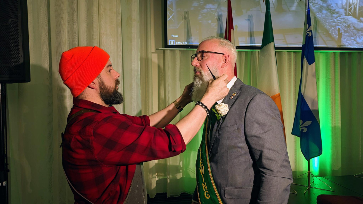 Pour une bonne cause, la célèbre barbe vient d’être réduite de moitié. La taille a symboliquement eu lieu lors de la Saint-Patrick du 17 mars, dans le but de lever des fonds pour la société Saint-Patrick, un regroupement de la communauté irlandaise de Montréal, qui fait des dons à divers organismes dans la ville.