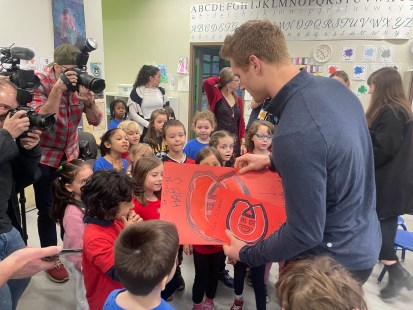 Le joueur des Canadiens Mike Matheson en visite à l’école St-Gabriel