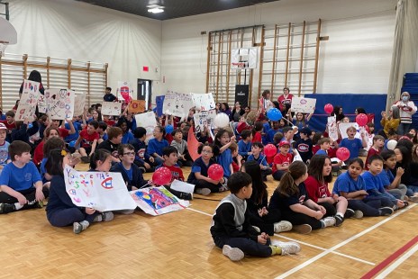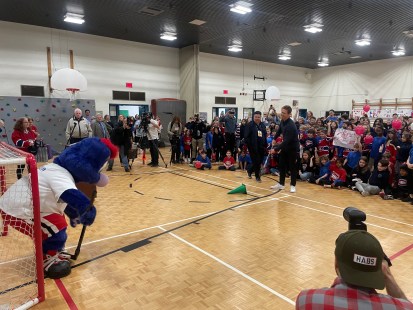 «Go Habs go! Go Habs go!» entonnent le reste des élèves qui attendent le défenseur des Canadiens dans le gymnase. À son arrivée, Mike Matheson est accueilli en héros. Les enfants ont préparé de nombreuses pancartes et ont revêtu leur plus beau chandail à l’effigie du tricolore.